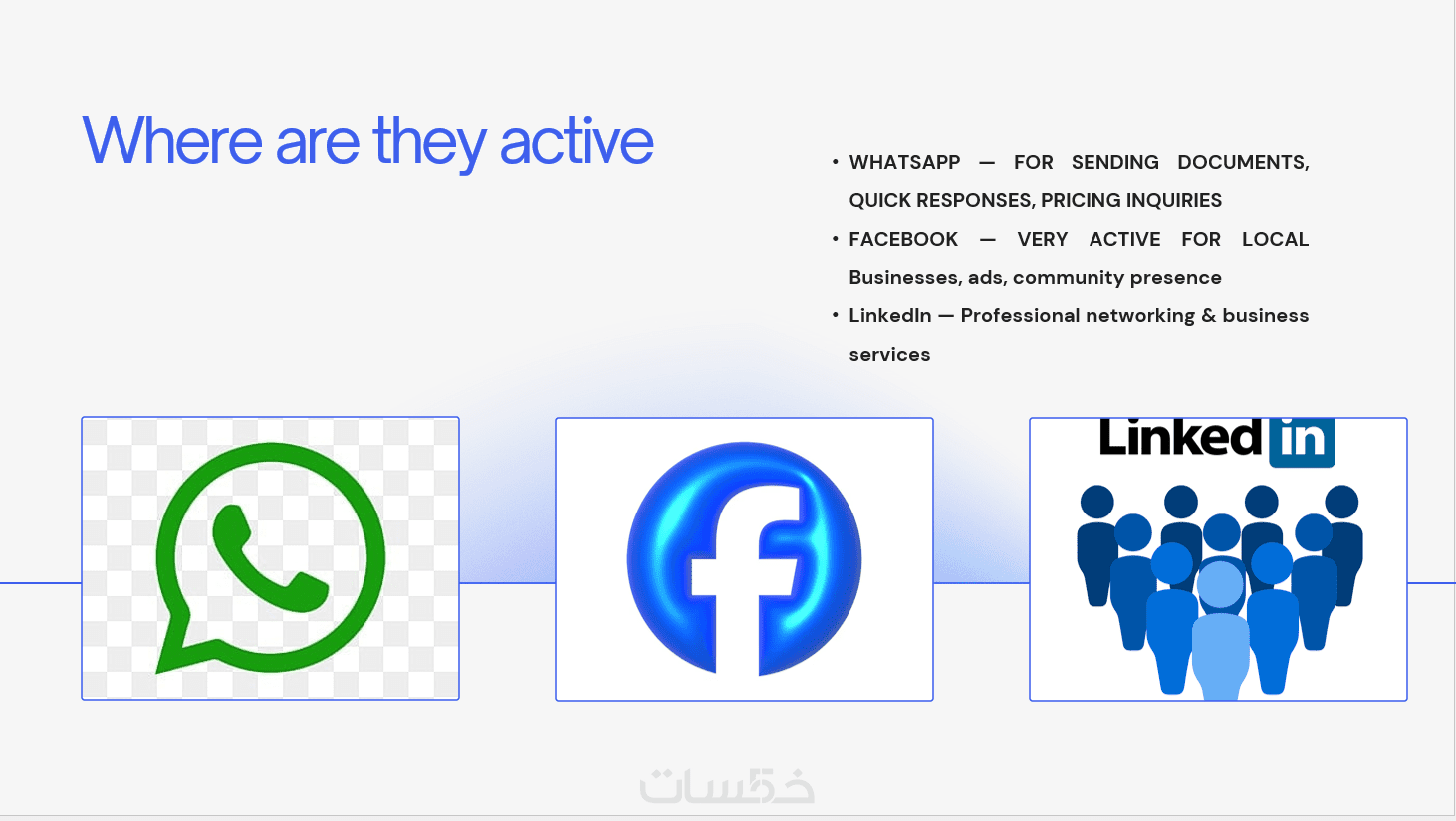 بجانب مهارات العرض يعتبر العرض التقديمى شئ اساسى ومهم فى جذب الانتباه وسهولة شرح الفكره للجمهور المستهدف. كما انها ايضا تجعل العرض تفاعلى فتسمح بإشراك المتلقين في العرض. الخدمة تشمل 5 شرائح (يمكن زيادة العدد حسب الطلب).