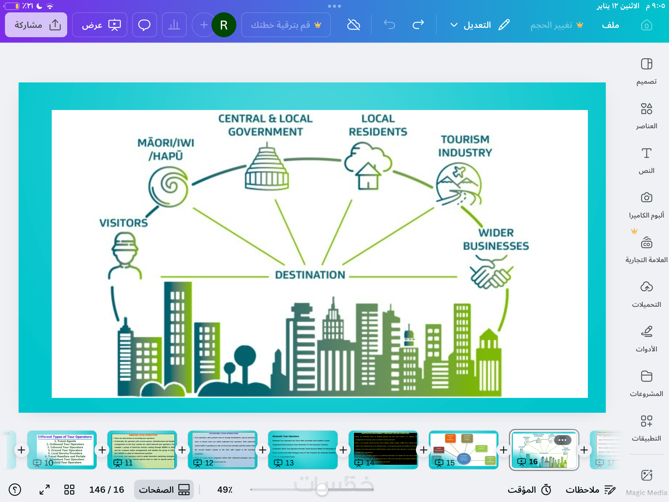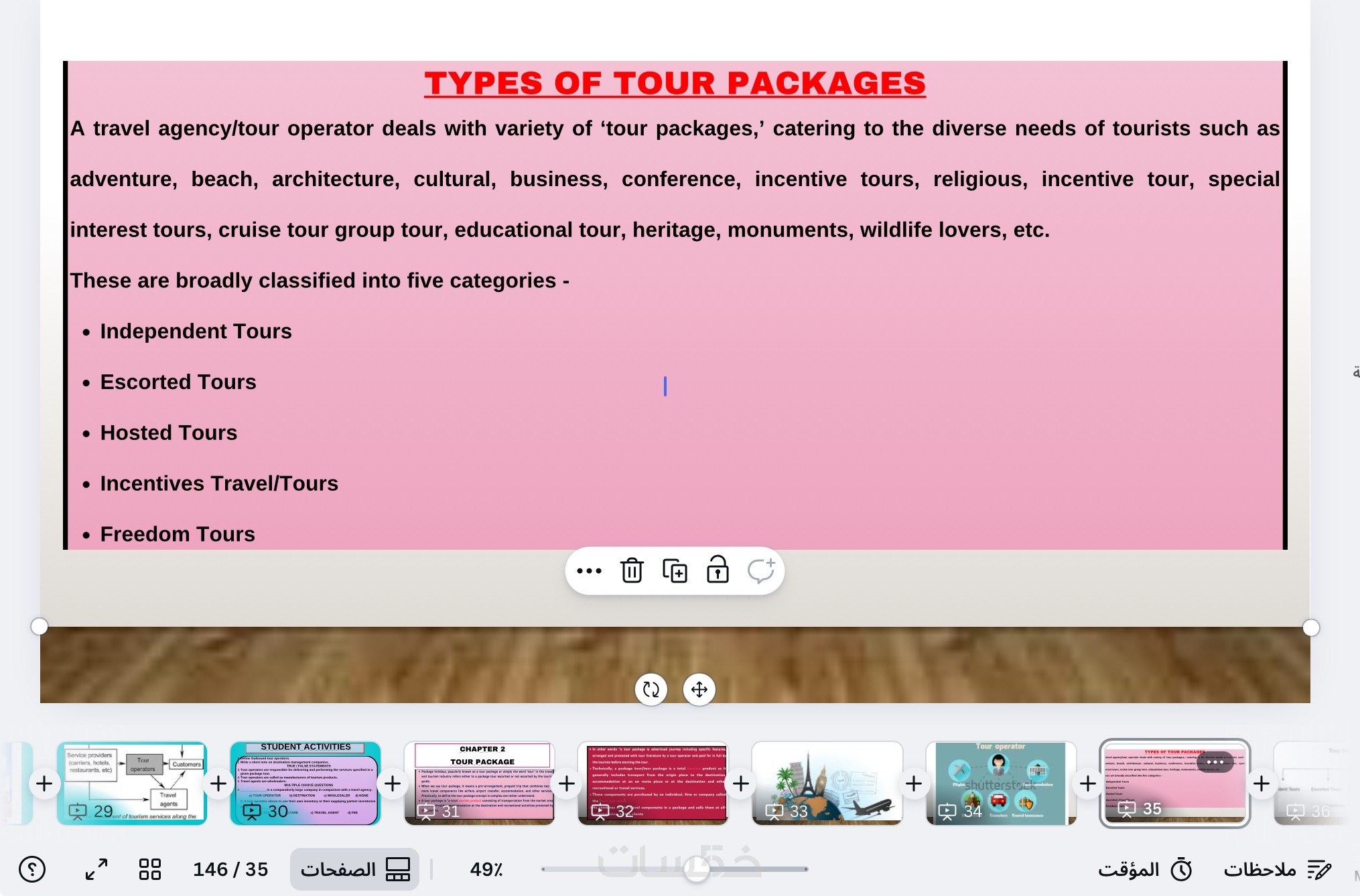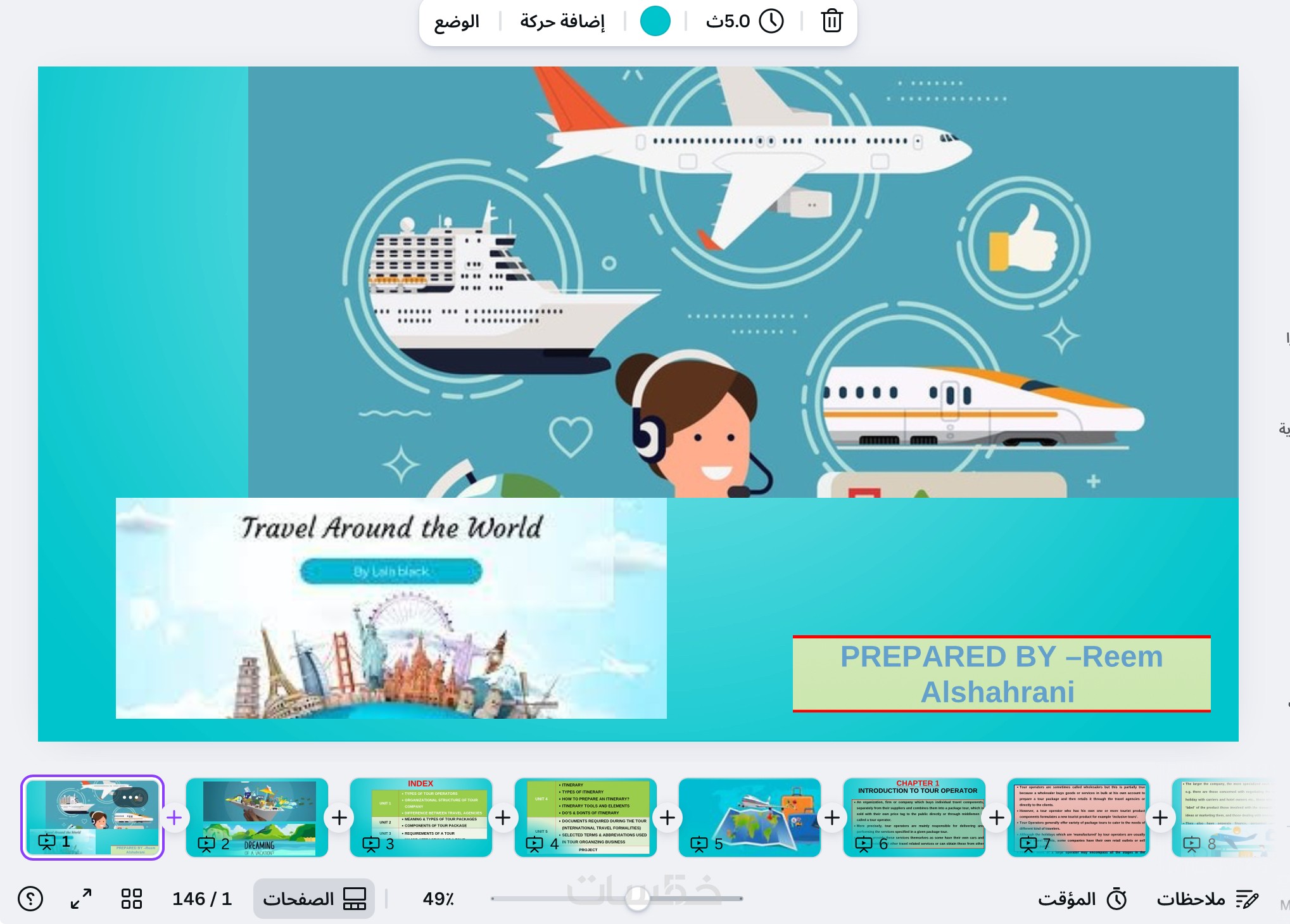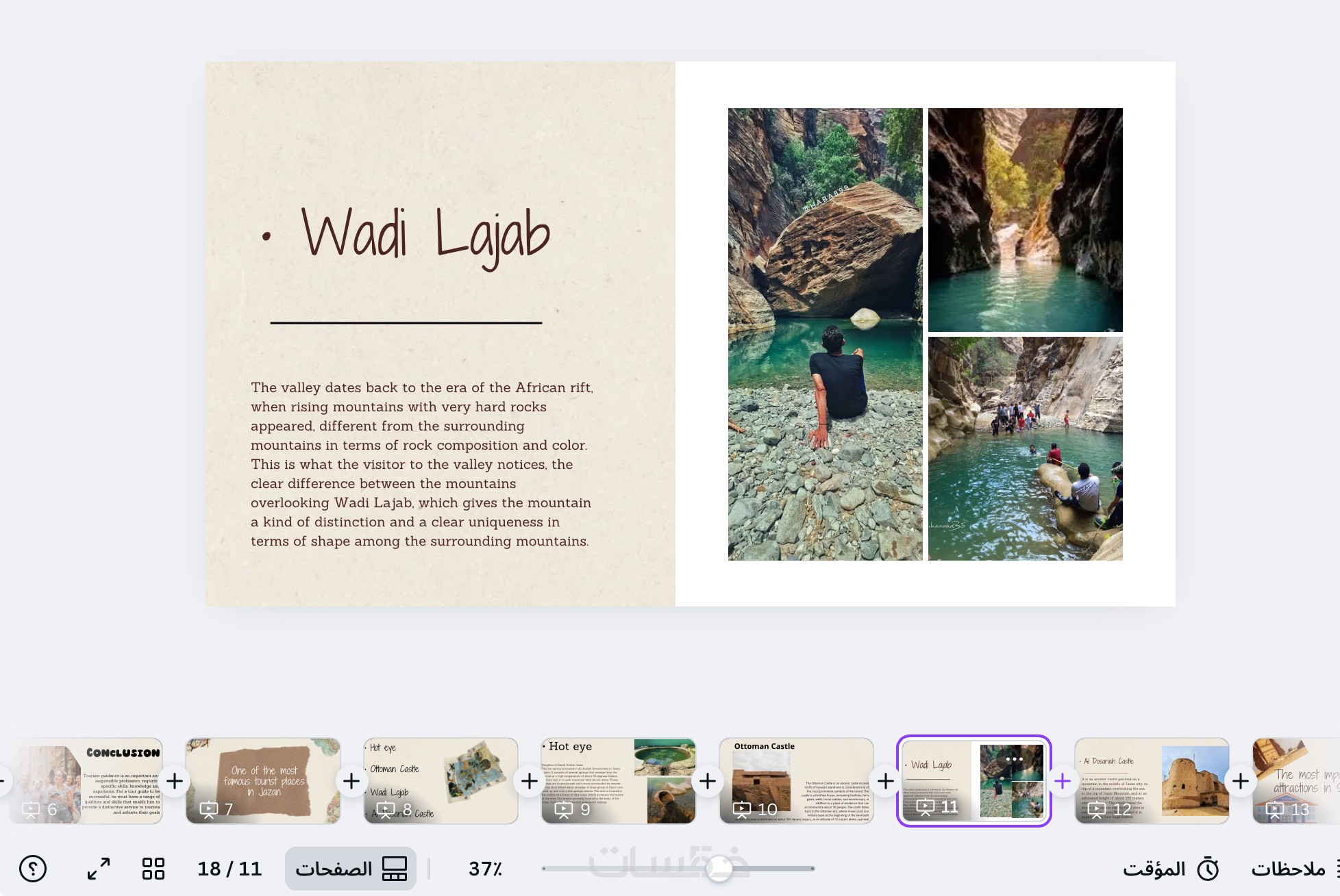 •اهتمام بالتفاصيل الدقيقة في التصميم، من اختيار الألوان والخطوط إلى تنظيم الشرائح والمحتوى بشكل سلس وجميل.