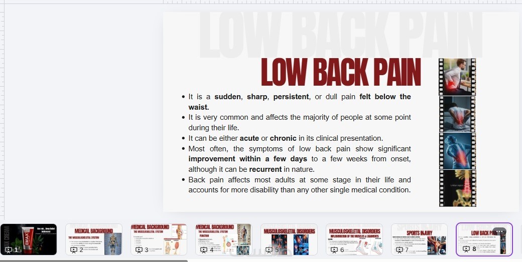 خدمة اعداد Presentation طبية احترافية للتدريب وعرض المحتوى تساعدك على عرض افكارك او منتجاتك بطريقة منظمة وجذابة. المحتوي من البداية ترتيب الافكار وصياغتها باسلوب مناسب للجمهور المستهدف مع اقتراح صور داعمة عند الحاجة.
