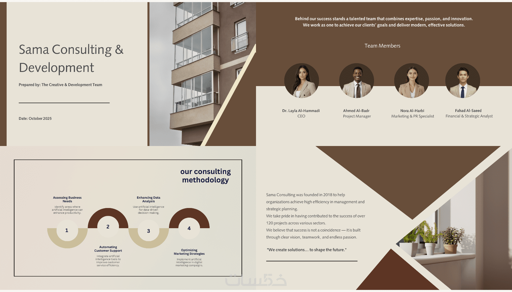 تسليم الملف النهائي بصيغة PDF عالية الجودة وجاهزة للعرض.