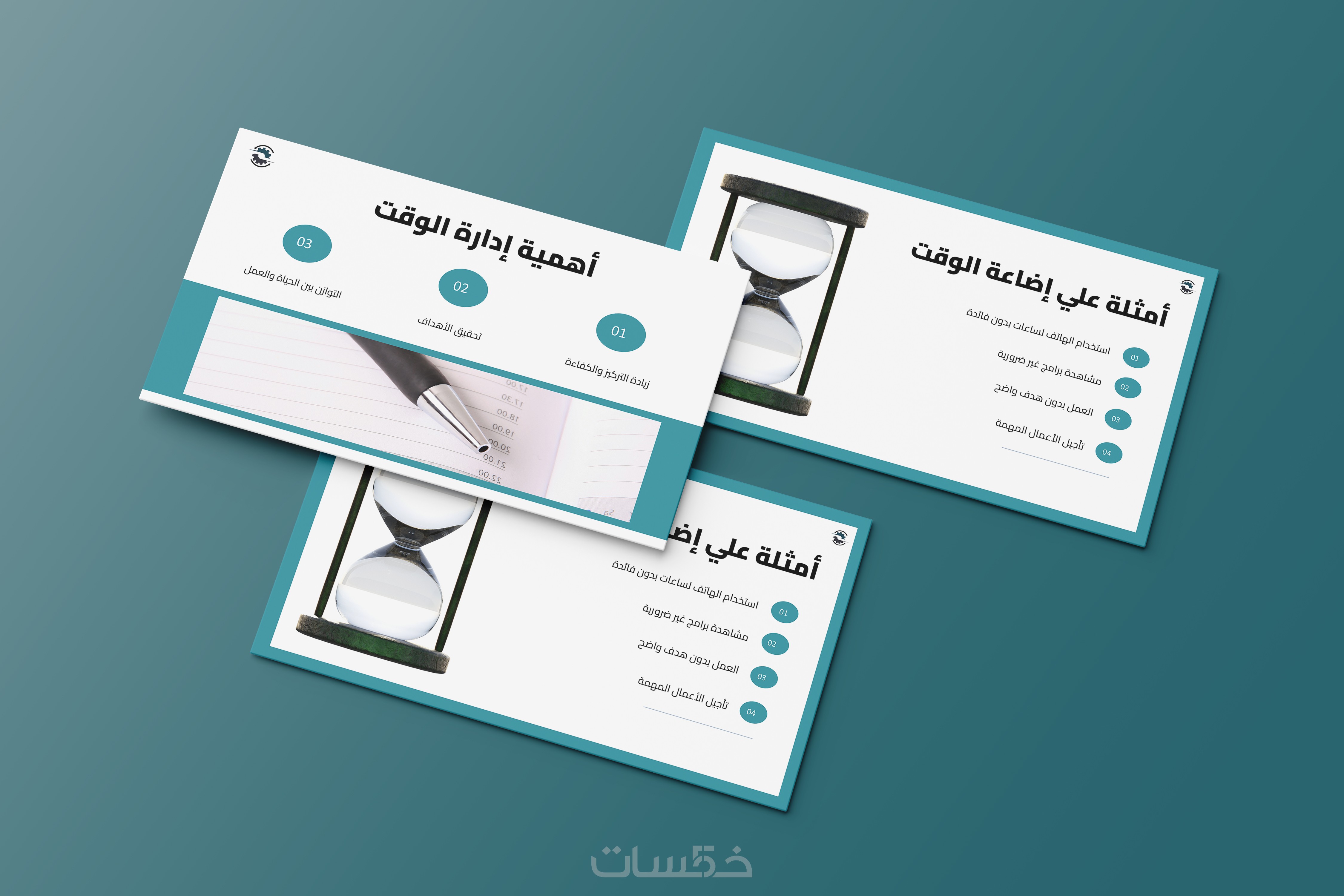 • اختيار ألوان وخطوط متناسقة تتناسب مع طبيعة المحتوى وطبيعة العرض.