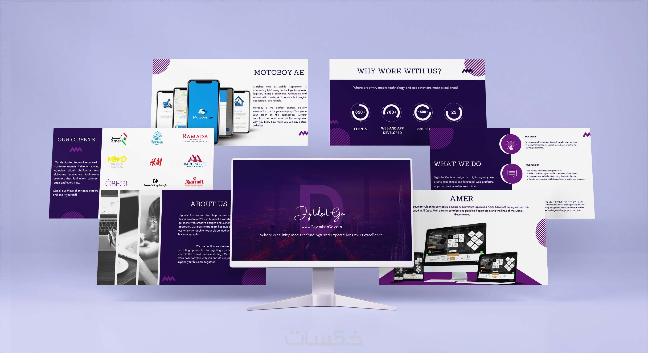 خدمة تصميم عروض باوربوينت احترافية وإبداعية ، بجودة عالية وتهدف لإيصال فكرتكم بأفضل صورة.