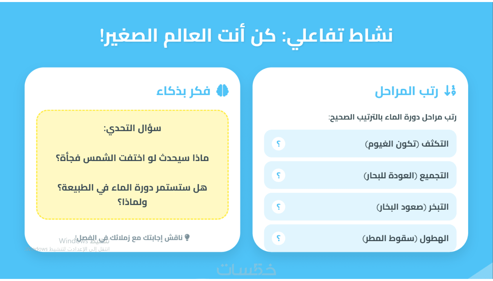 اضافة 5 شرائح تحتوي على أنشطة تفاعلية وألعاب تعليمية (مسابقات واختيار من متعدد)