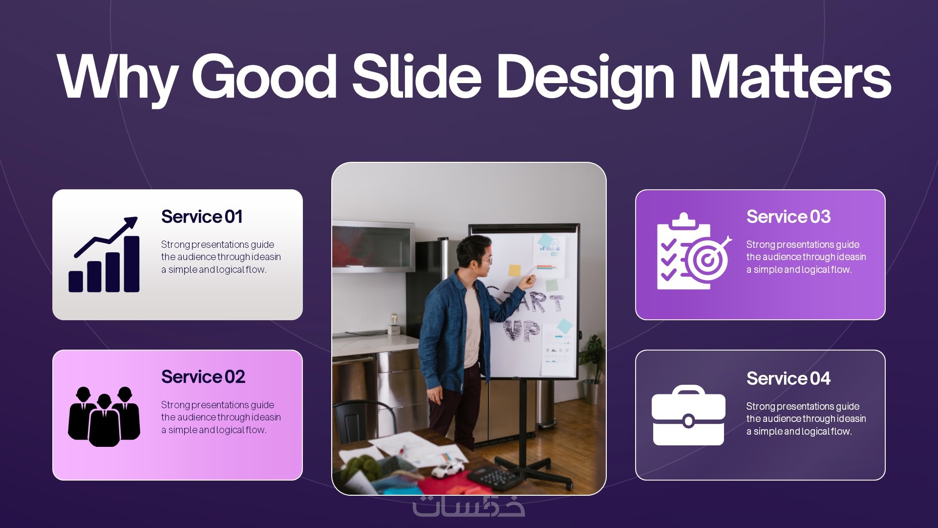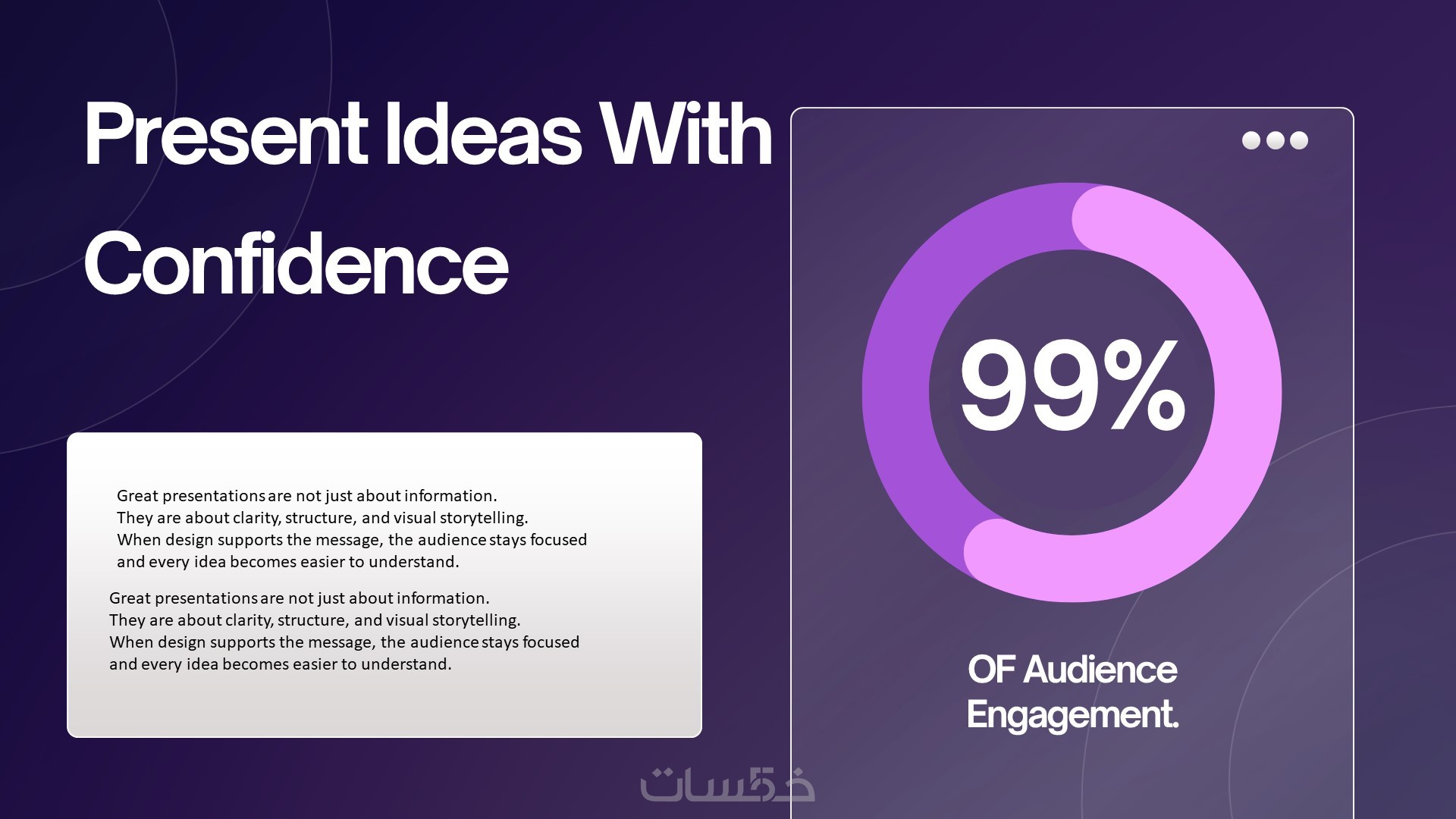 هدفي أن تحصل على عرض يجعل مديرك أو أستاذك أو جمهورك يفهم فكرتك بسرعة وينبهر بطريقة تقديمها.