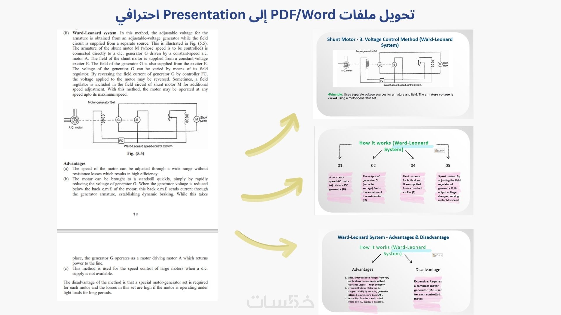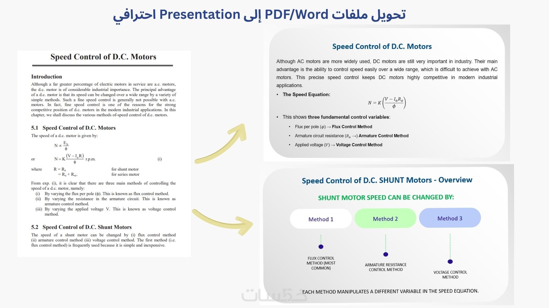 هل لديك ملف Word أو PDF مليء بالنصوص والمعادلات المعقدة وتريد تحويله إلى عرض تقديمي (PowerPoint) يخطف الأنظار؟