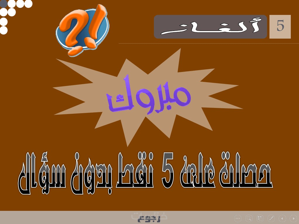 أعطيك 5 مسابقات بوربوينت ثقافية ترفيهية متنوعة من إعدادي تشمل أسئلة في محاور مختلفة وتحديات بشكل تفاعلي، كل مسابقة تحتوي على 80 شريحة للأسئلة مقسمة على محاور، تصلح للمربين والمؤسسات والجمعيات ذات الأنشطة الموجهة للأطفال واليافعين بالخصوص وكذا الشباب حسب مستوى الأسئلة، + ملفات تشمل أسئلة وألغاز وتحديات كهدية.