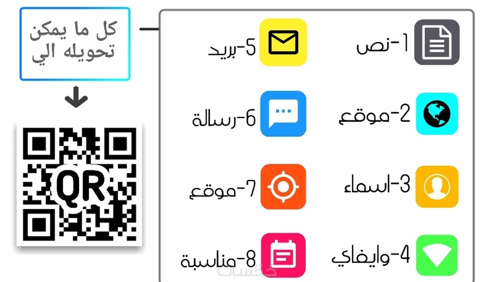 * يمكن استخدام QR code للمواقع على الانترنت ، وللبيانات الشخصية من ارقام هواتف وصوره وموقع .