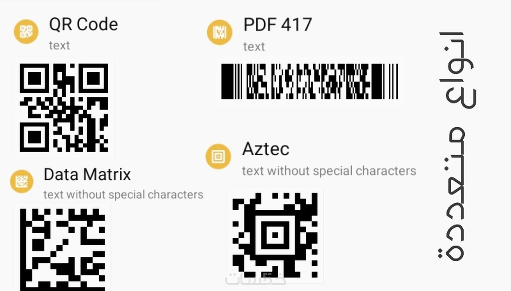 * الـ QR code يستطيع تخزين كم كبير من المعلومات التي تحتوي حتى على الأحرف وليس الأرقام فقط كما في الـ Barcode