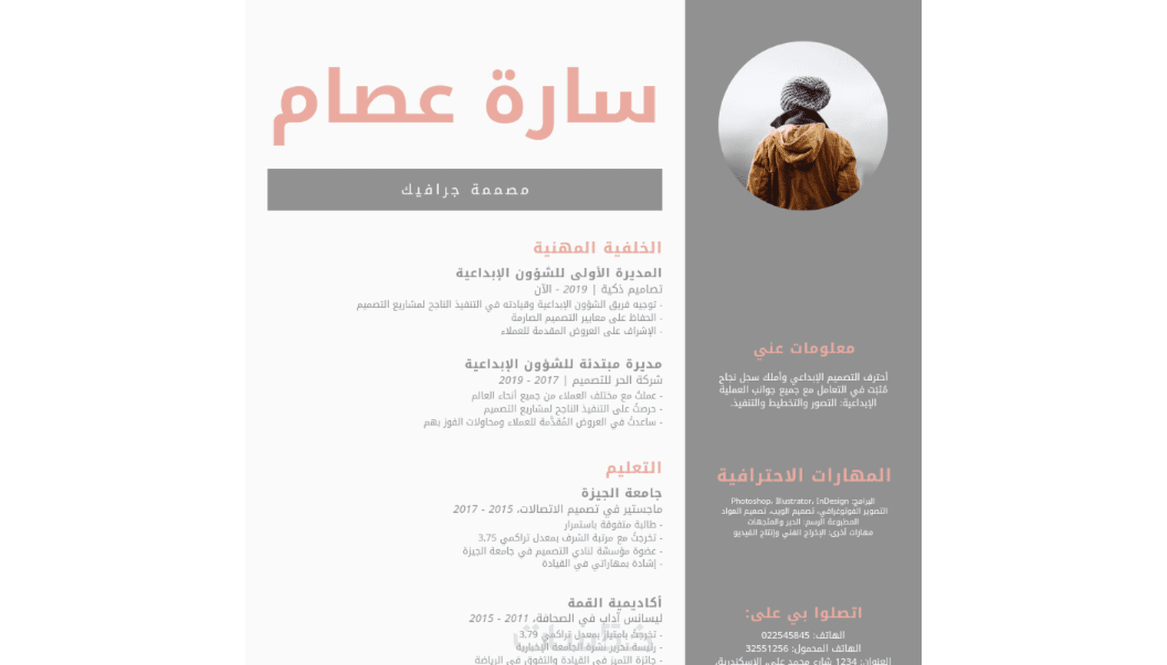 كما يتضمن التصميم أيقونات ذات شكل جذاب في عرض السيرة الذاتية CV.
