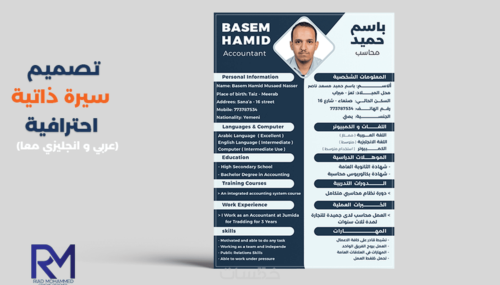 احصل على تصميم سيرة ذاتية احترافية باللغة ( العربية و الانجليزية معا ) وبشكل جذاب و متناسق 2022