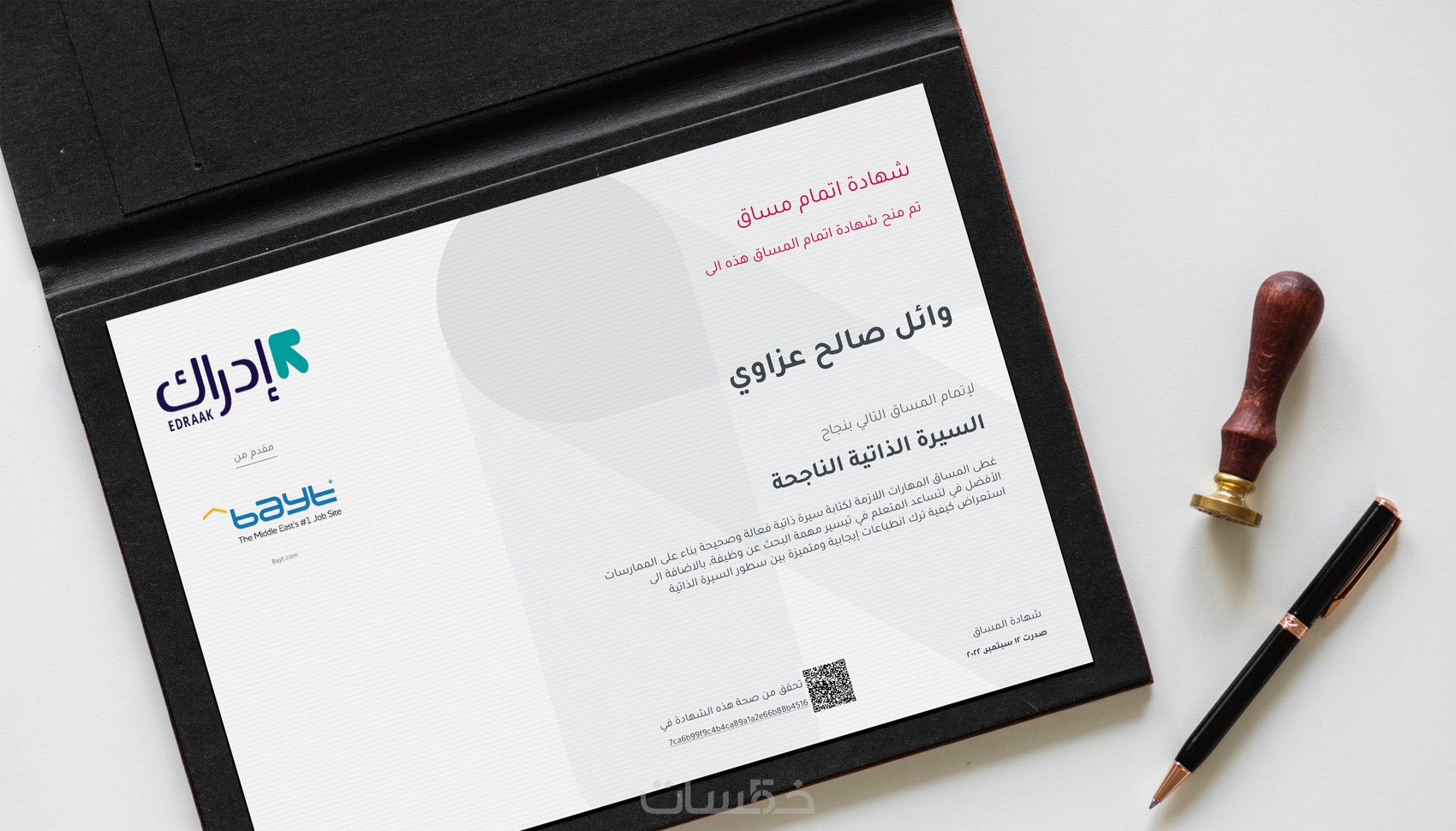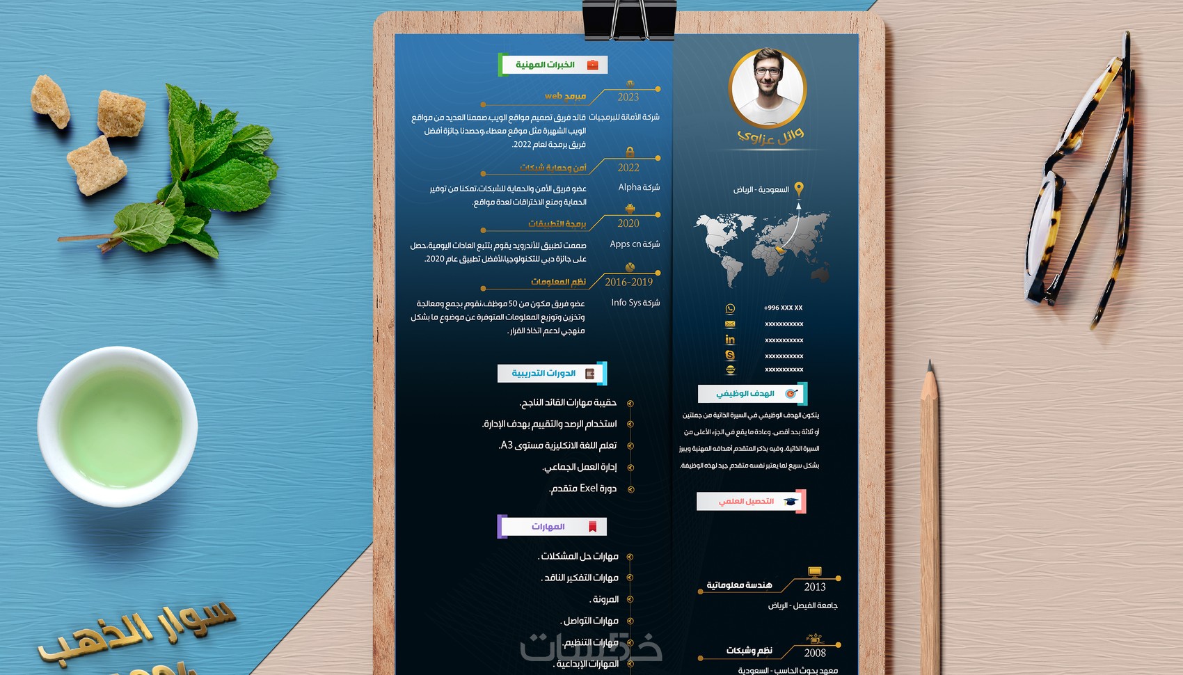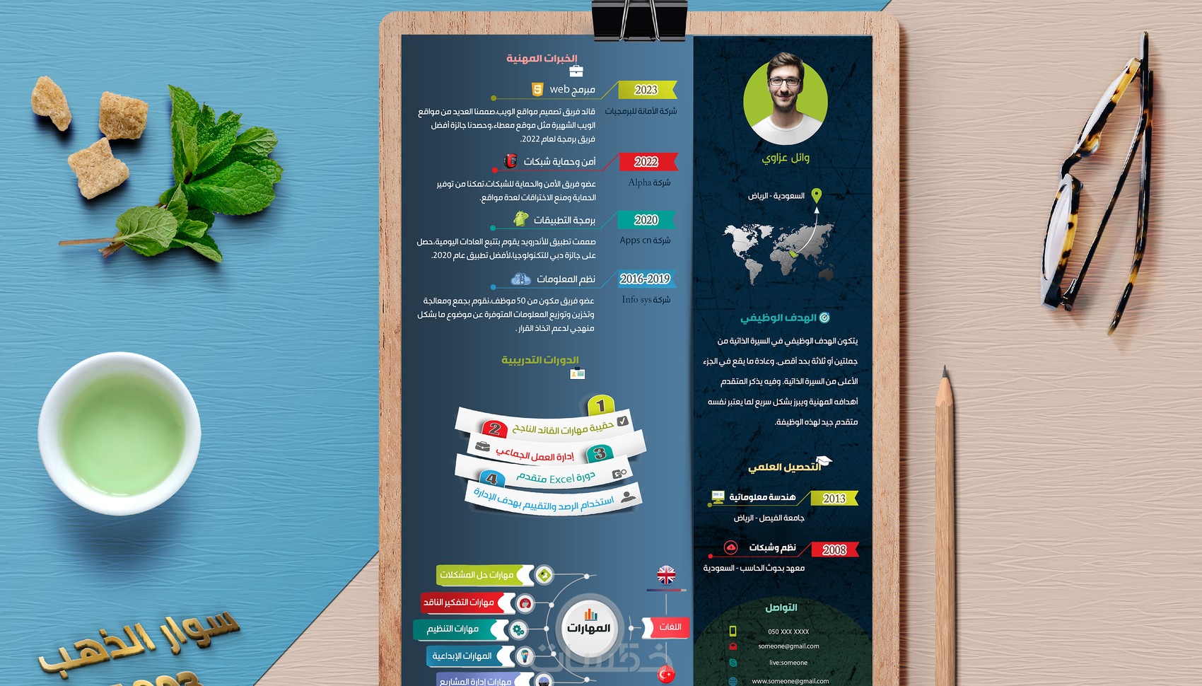 أنا وائل عزاوي حاصل على شهادة "بناء السيرة الذاتية الناجحة" مقدمة من Bayt.com، شغفي هو تصميم السيرة الذاتية وفق نماذج محلية وعالمية وبطريقة مهنية (كلاسيك) أو انفوجرافيك.