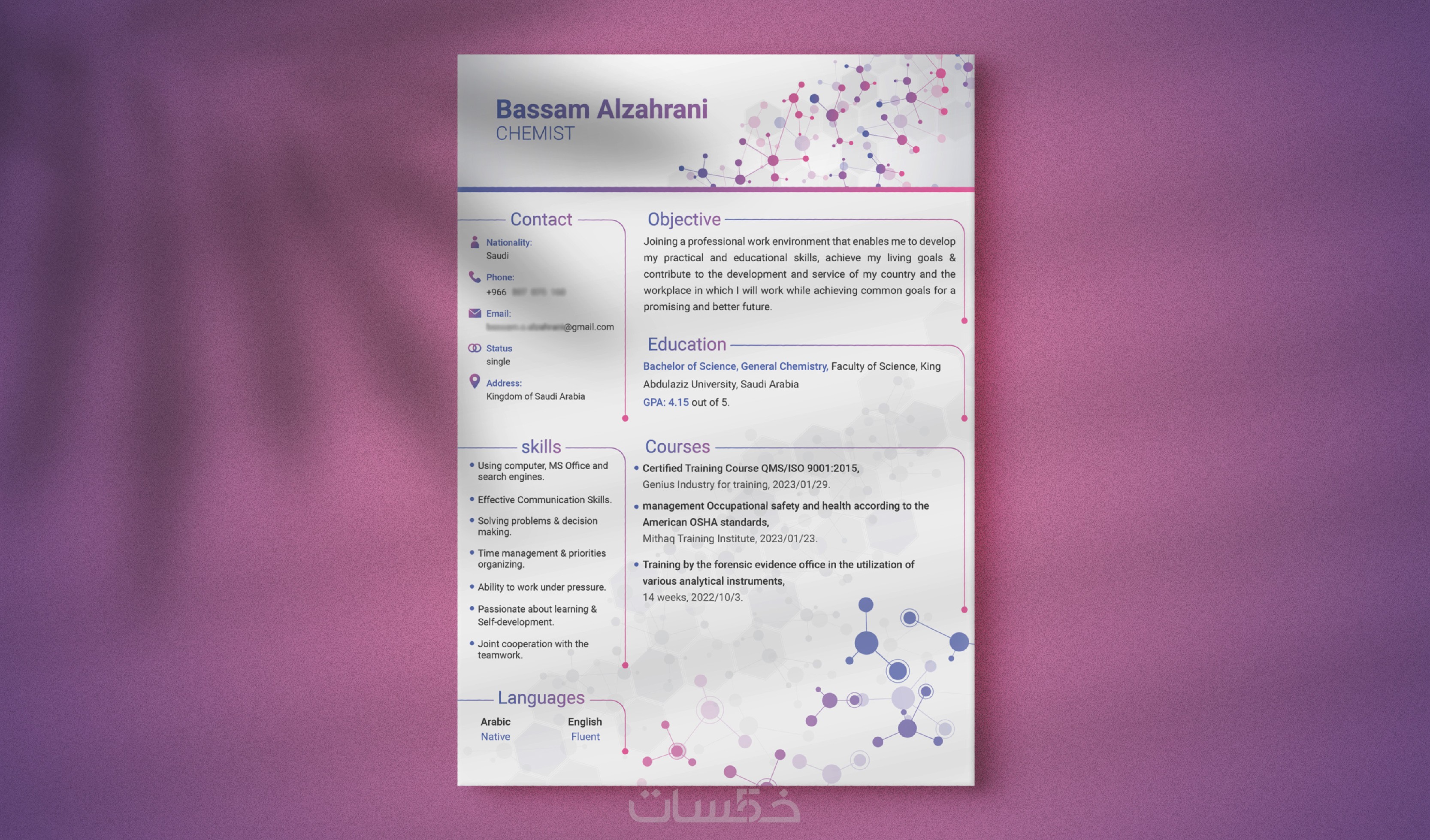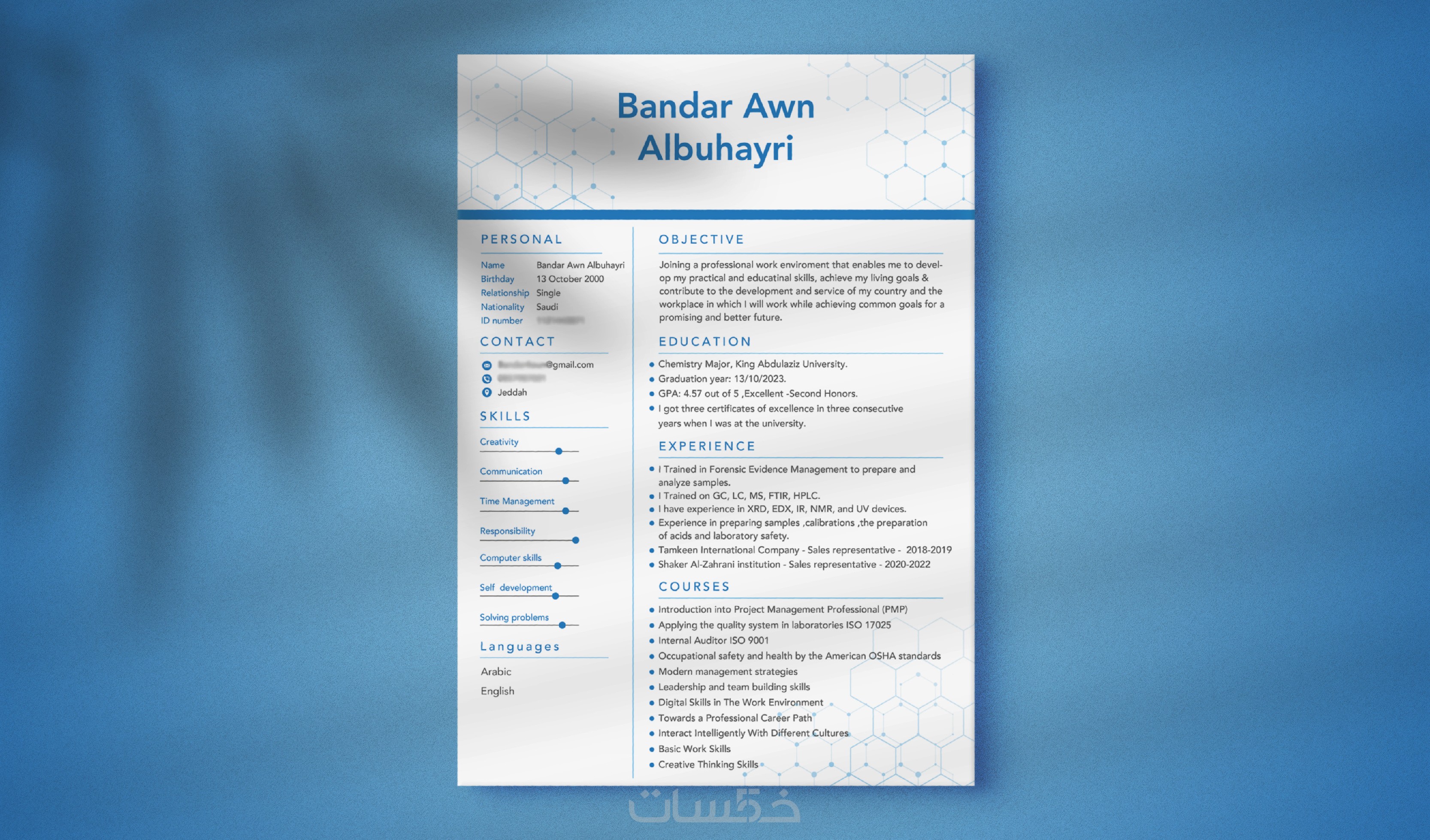 أهلاً بك في خدمتي لتصميم السيرة الذاتية الاحترافية والتي تتضمن ما يلي: