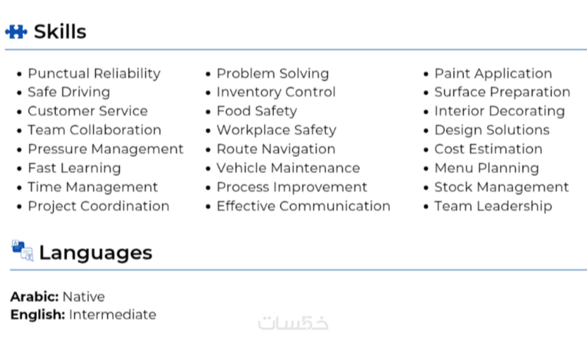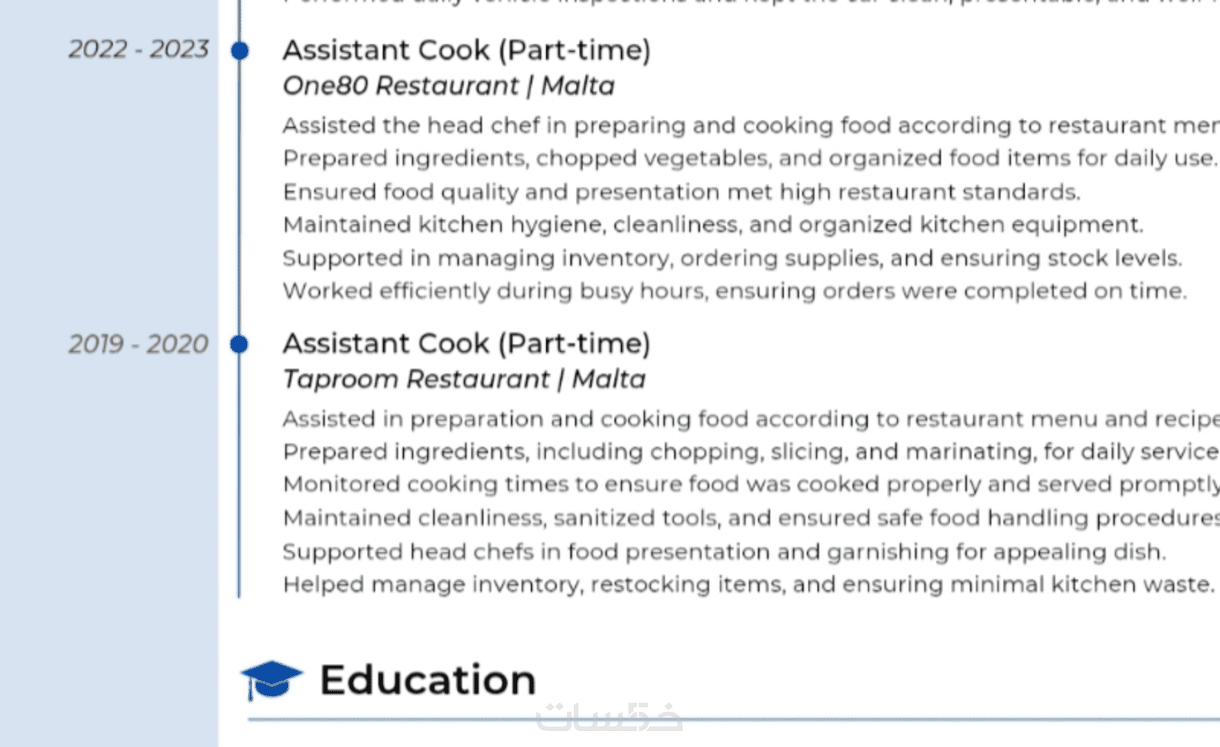أنا أقدّم لك خدمة كتابة وتصميم سيرة ذاتية احترافية متوافقة مع نظام ATS ومُصممة خصيصًا لتُبرز مهاراتك وخبراتك وتزيد من فرصك في القبول.
