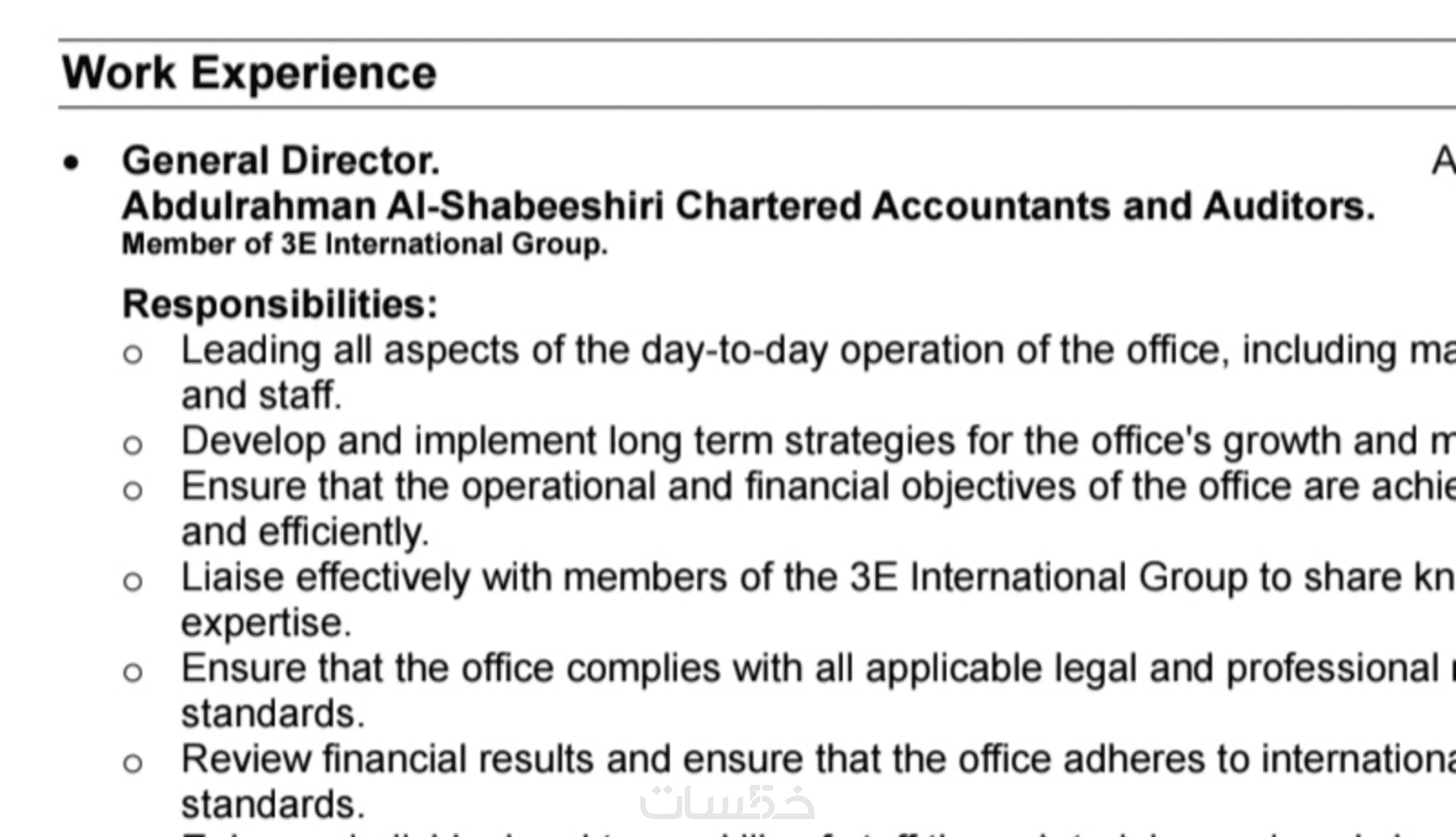 سيرة ذاتية منسقة تحتوي على أهم خبراتك ومؤهلاتك