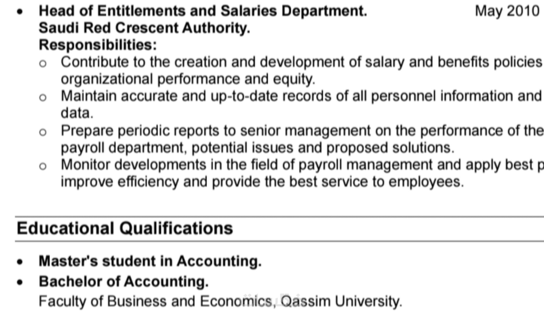كتابة صفحة إضافية (إجمالي صفحتين للسيرة الذاتية 500 كلمة)