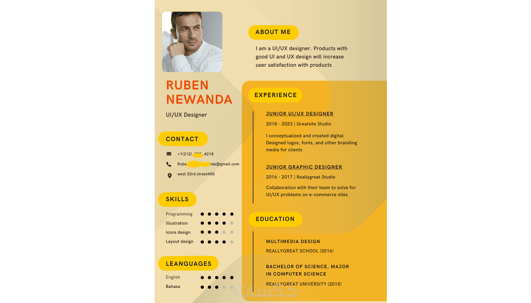 •التصميم طبقا للمقاييس العالمية لكتابة السيرة الذاتية