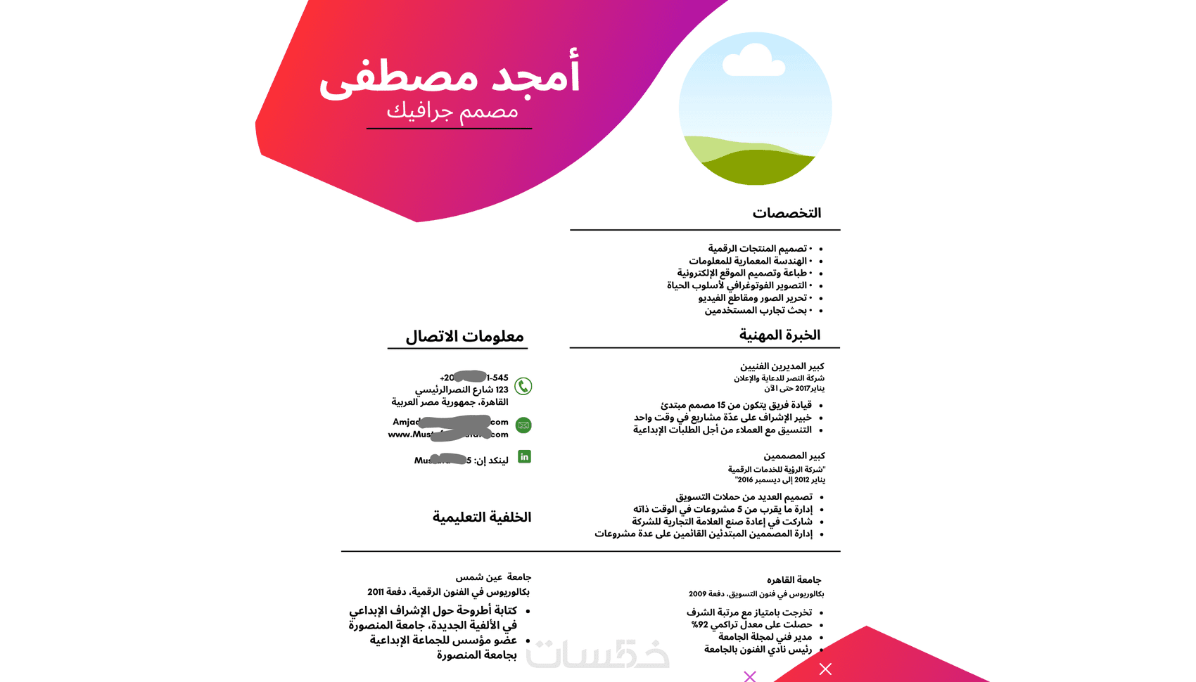 ◄ مقدّم الخدمة هو مترجم ومصمم ولديه خبرة واسعة في هذا المجال، وهدفه الأول هو قبولك في وظائفك القادمة بإذن الله.