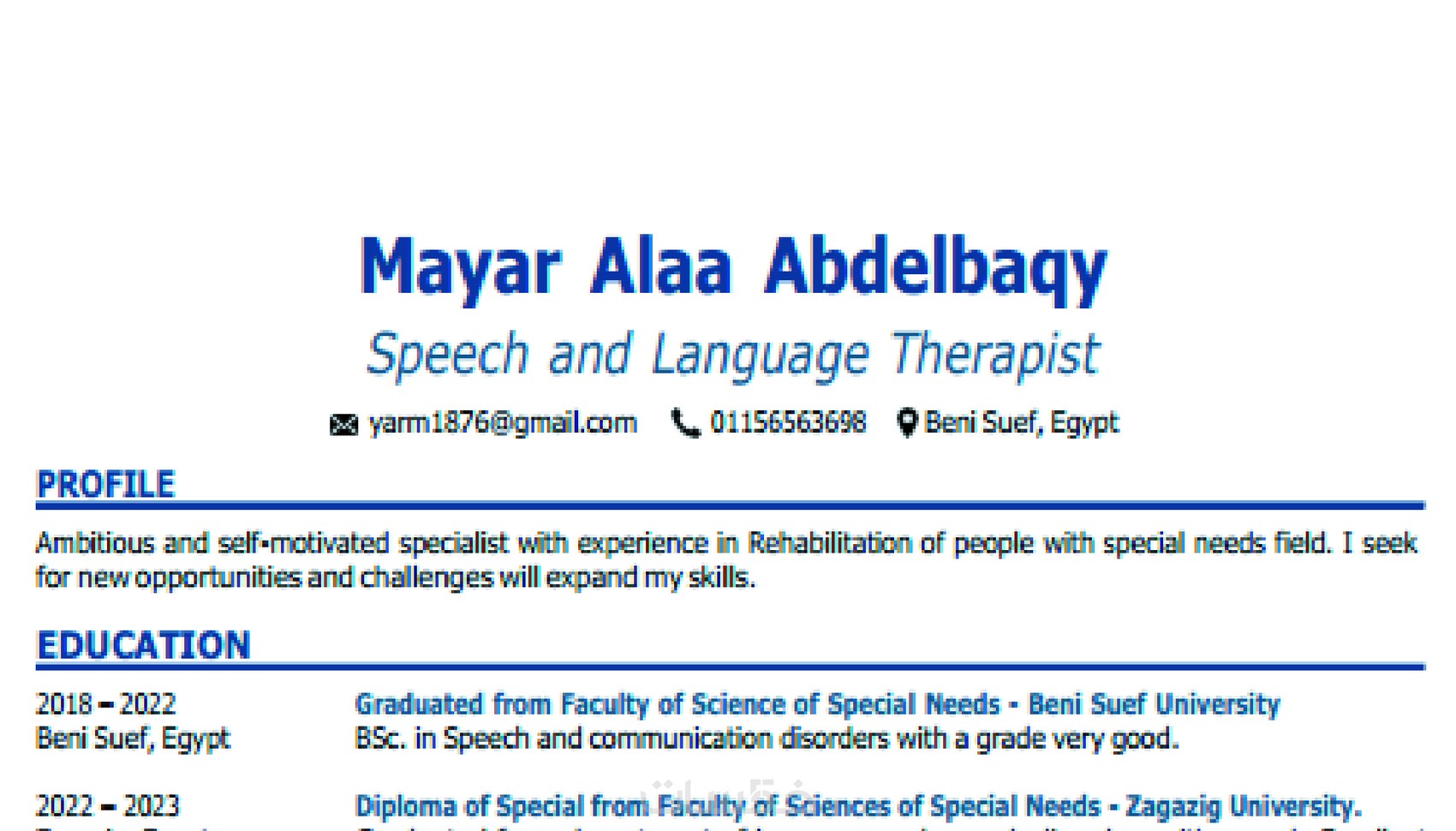 أقوم بعرض بعض نماذج من السير الذاتية وذلك حسب خبرتك والمعلومات الخاصة بك.