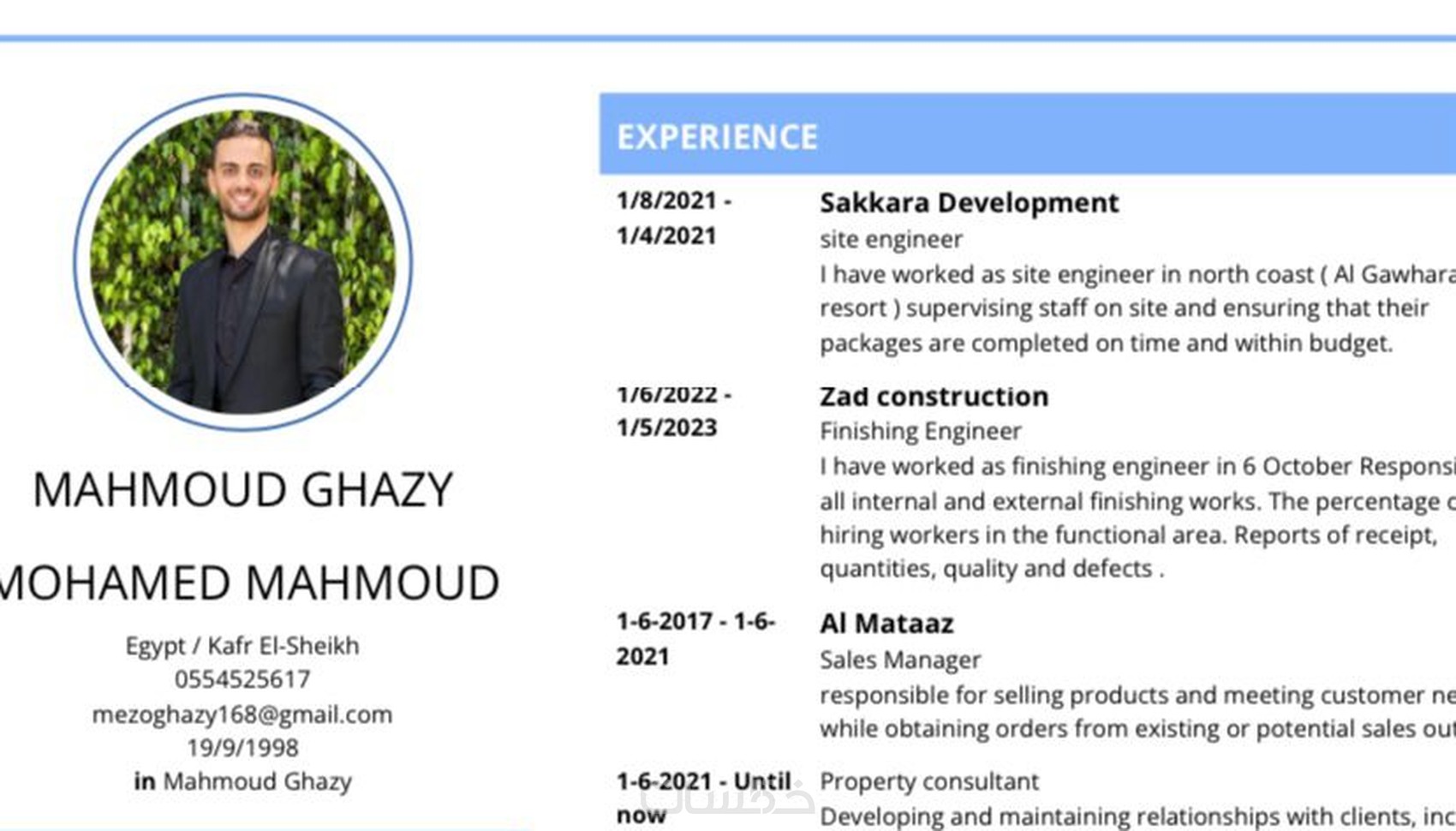 تصميم سيرتك الذاتية بما يتناسب مع مؤهلاتك و دراساتك و ماتكسبه من خبرات بشكل احترافي