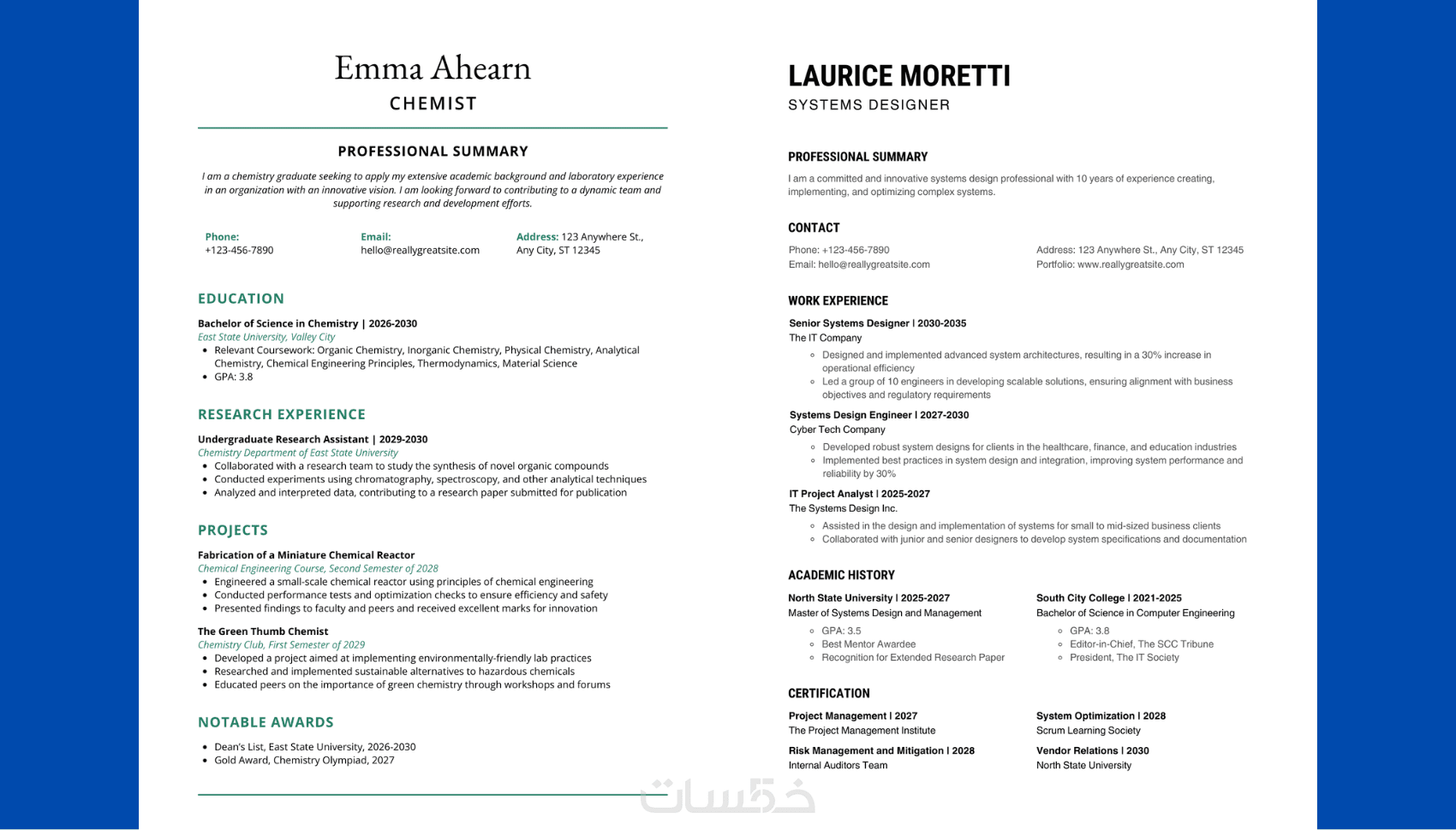 هل تحتاج إلى تصميم سيرة ذاتية مميز وجذاب يساعدك على التفرقة عن المنافسين وجذب انتباه الشركات؟ إذاً، فإن خدمتنا للتصميم هي ما تحتاجه. نقدم خدمة تصميم سيرة ذاتية احترافية وإبداعية تلبي احتياجاتك وتساعدك في تحقيق أهدافك.
