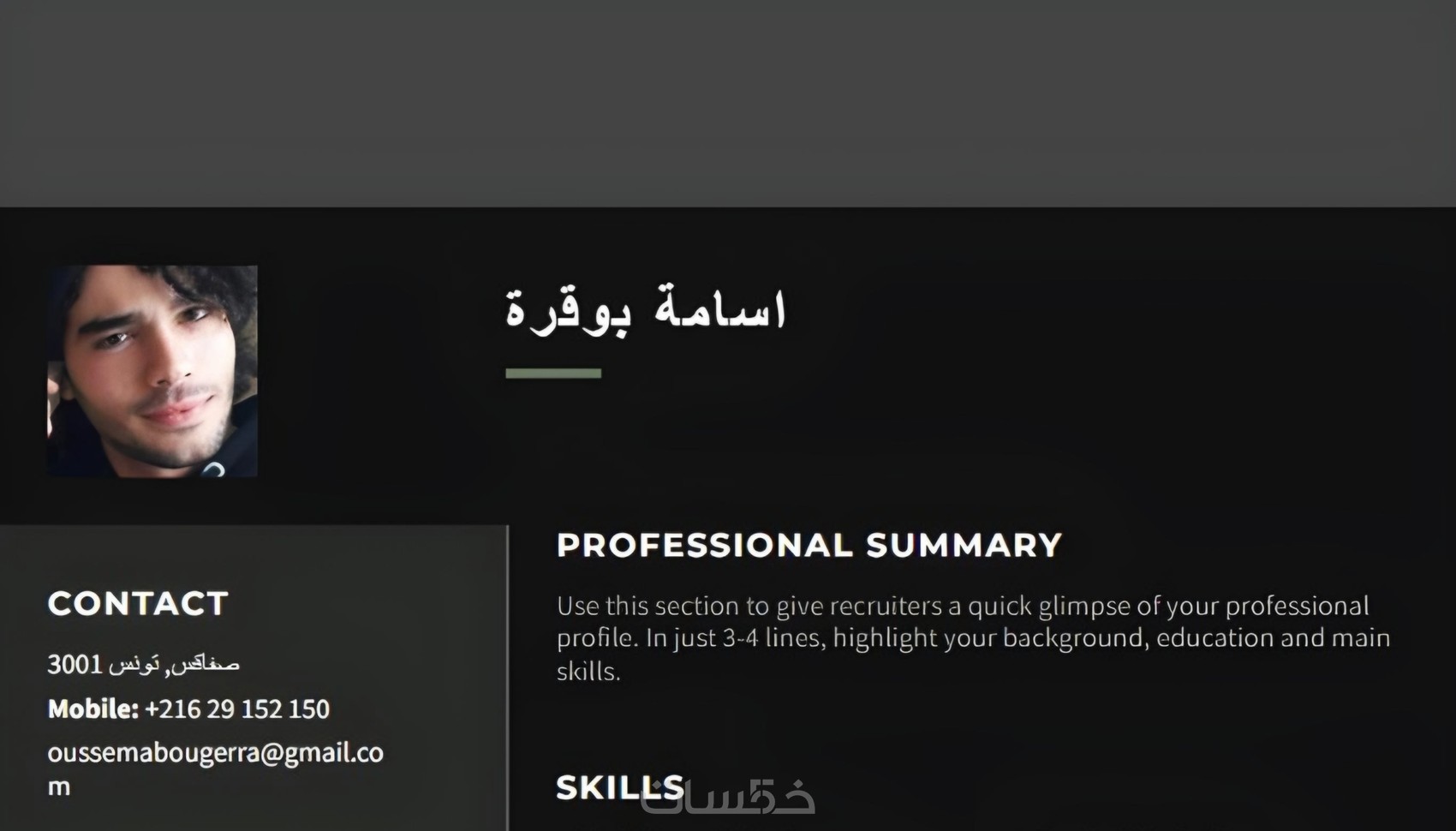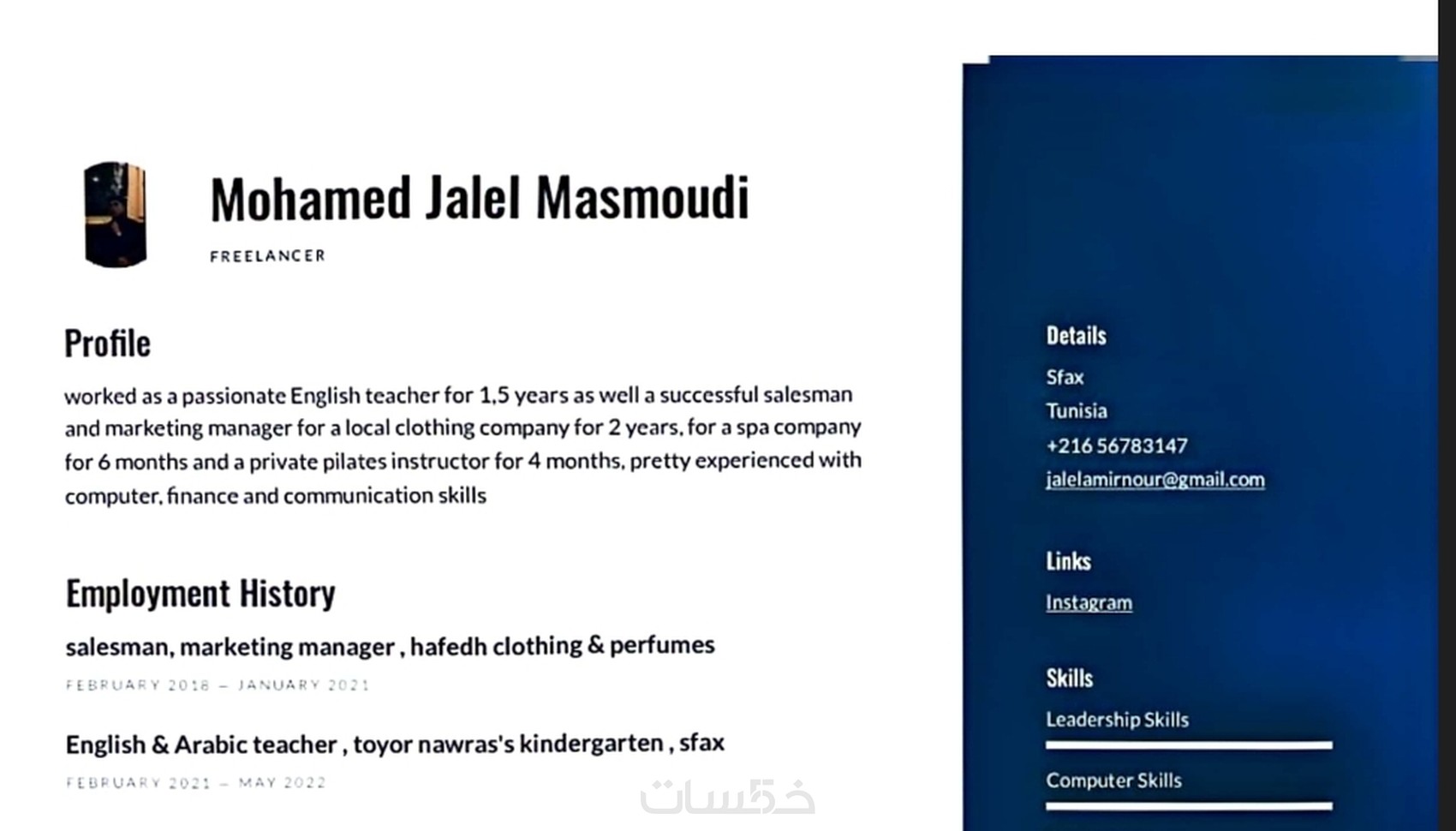 يسرني أن أقدم نفسي، محمد جلال المصمودي، مصمم جرافيك ذو خبرة واسعة ومحترف في كتابة السير الذاتية. بفضل شغفي العميق للكتابة وموهبتي الفطرية في السرد، أنا قادر على إنشاء سير ذاتية مصممة خصيصًا لتلبية احتياجاتكم وأهدافكم الوظيفية بشكل مثالي.