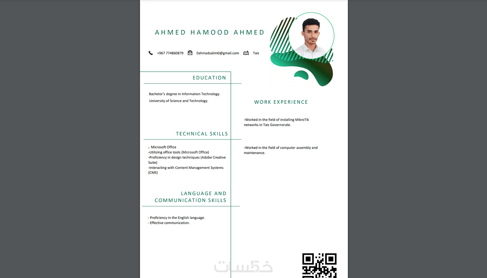 1- سيرة ذاتية صفحتين على شكل ملف PDF جاهز للطباعة، كل صفحة باللغة التي تريدها أو بنفس الصفحة اللغتين معاً.