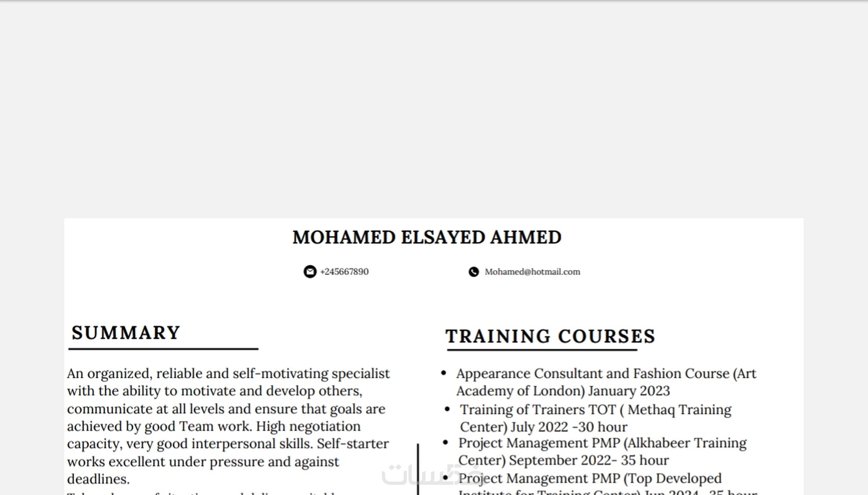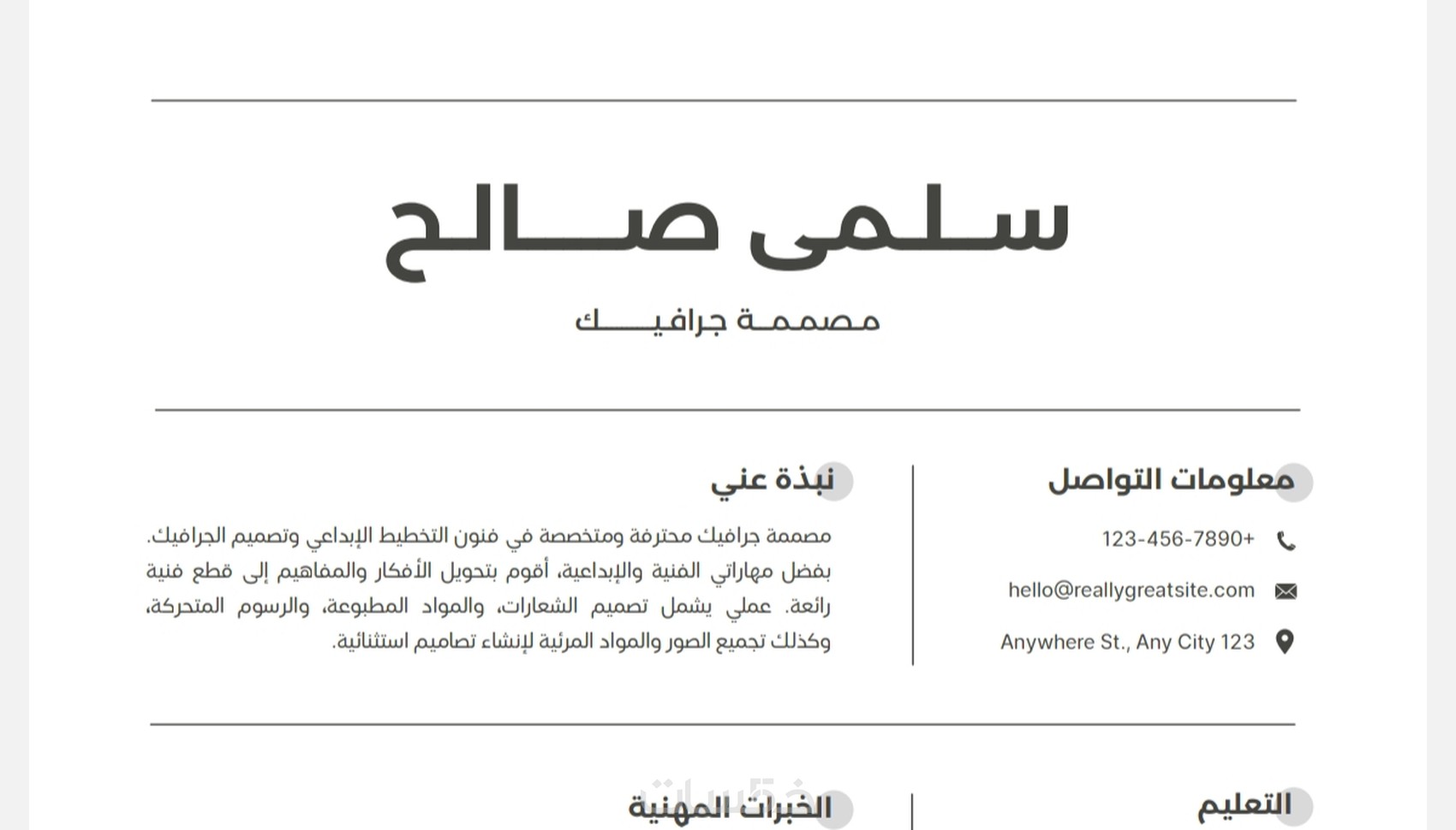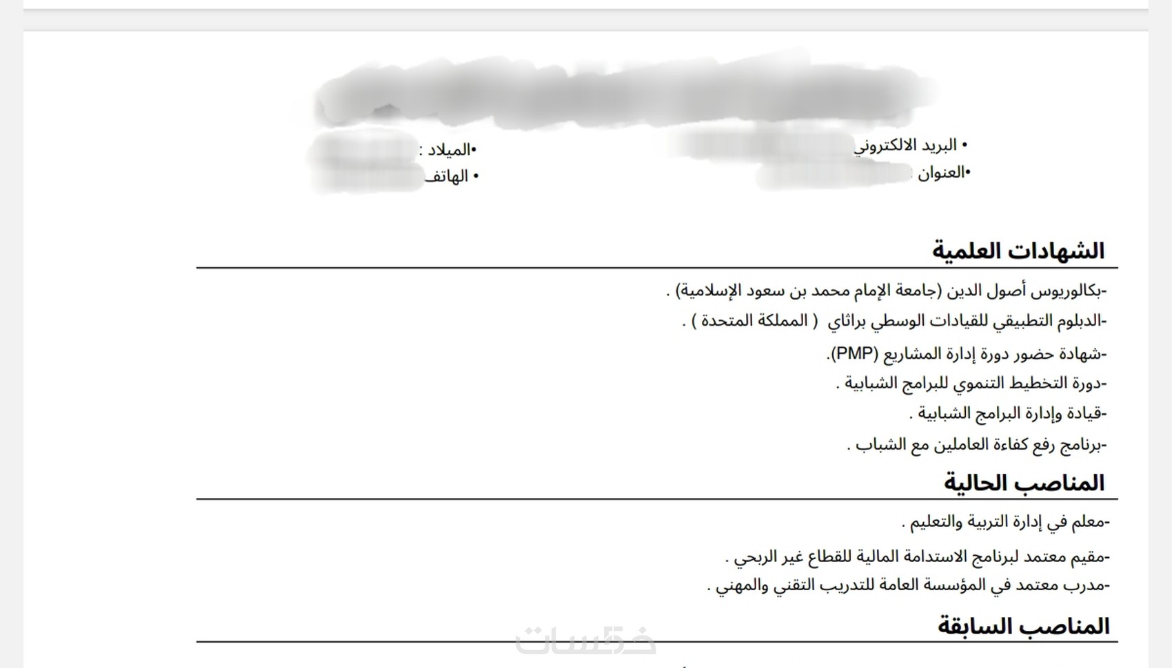 بصراحة هذي ثاني مرة اتعامل معاها ،المرة الاولى cv كان حق التقديم على الشركات ومعارض التوظيف ونال على إعجاب اصحاب العمل ، وهذا cv الثاني رياضي للتقديم على الاندية الرياضية ونال على إعجابهم ،سرعه وتعاون على كثرة الاستفسارات ودقة وإخراج نهائي لل cv متميز شكرا جزيلا .