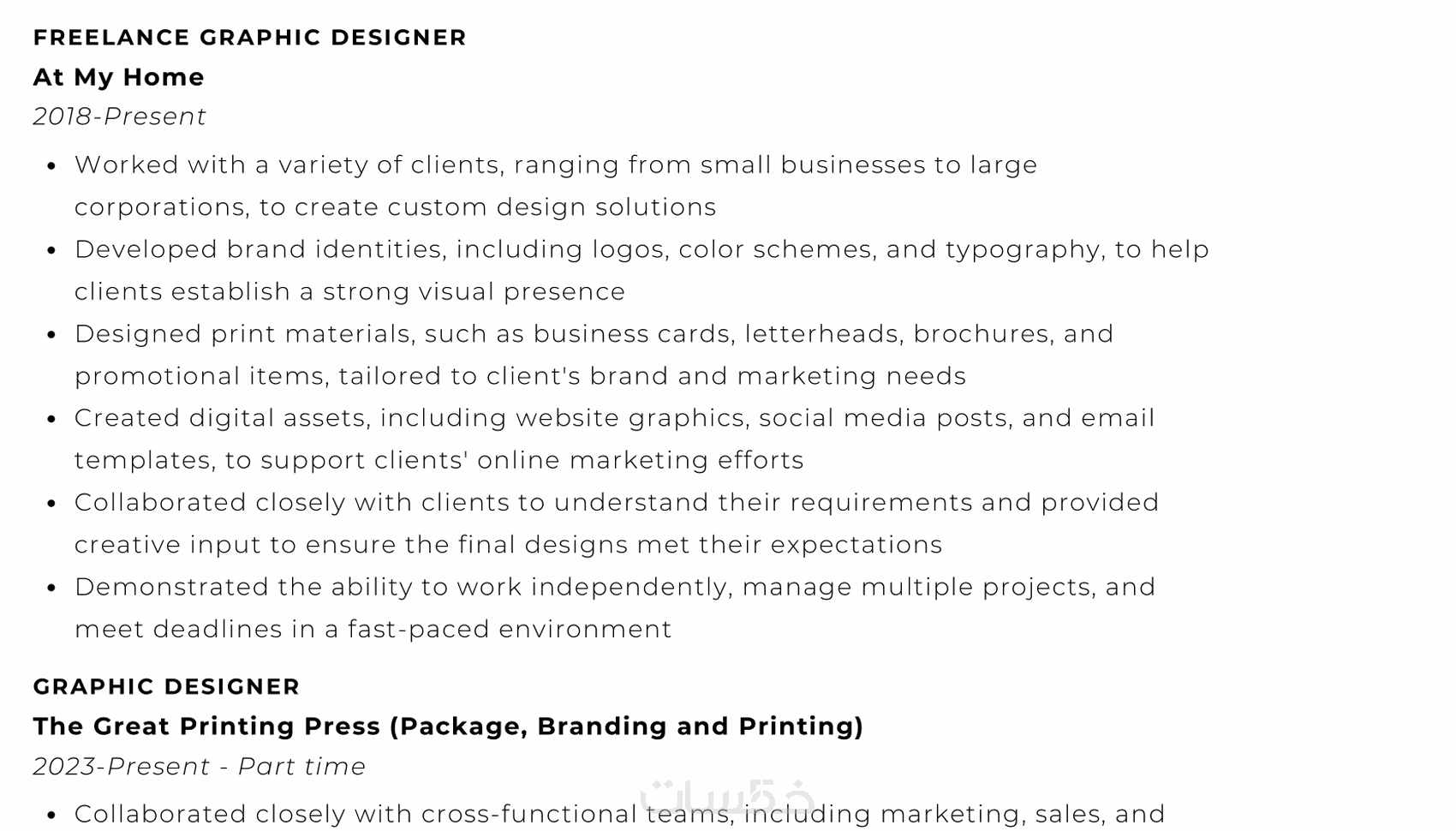 1-تصميم سيرة ذاتية باللغة العربية او الانجليزية ويكون النص جاهز