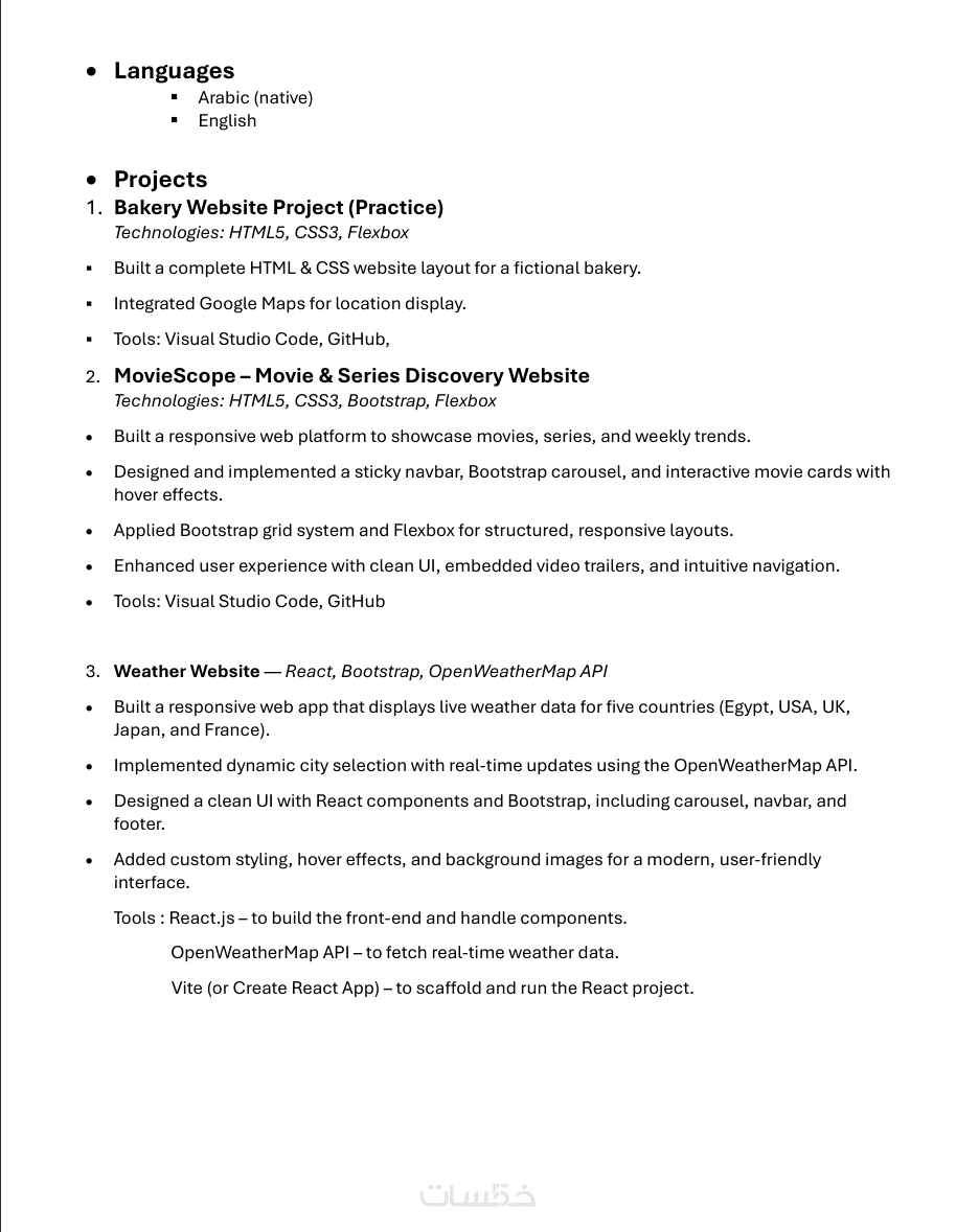 أقدم لك خدمة تصميم السيرة الذاتية باللغة العربية بجودة عالية