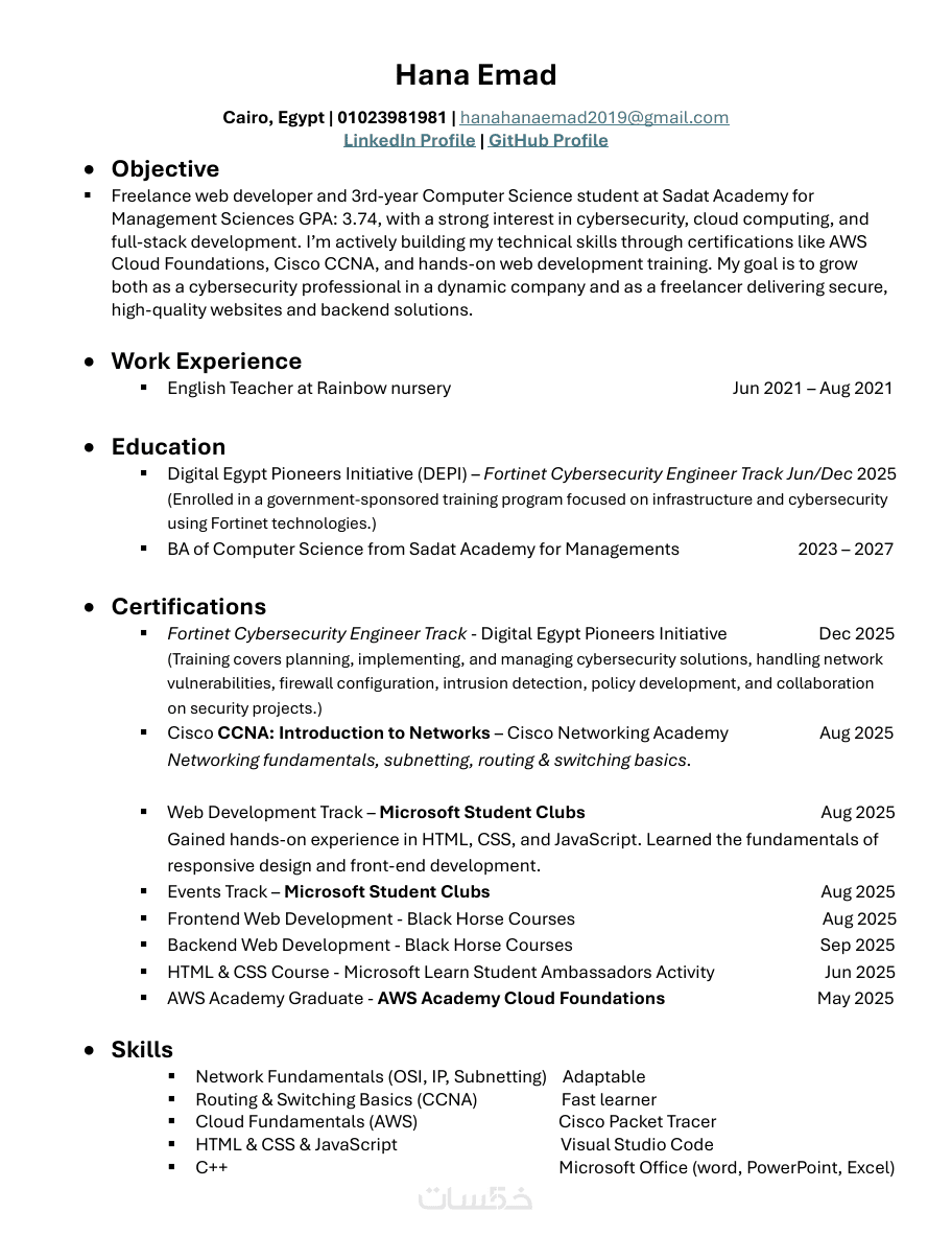 - تصميم أنيق وجذاب لرؤية المٌتلقي مما يزيد فرصة حصولك على الوظيفة.