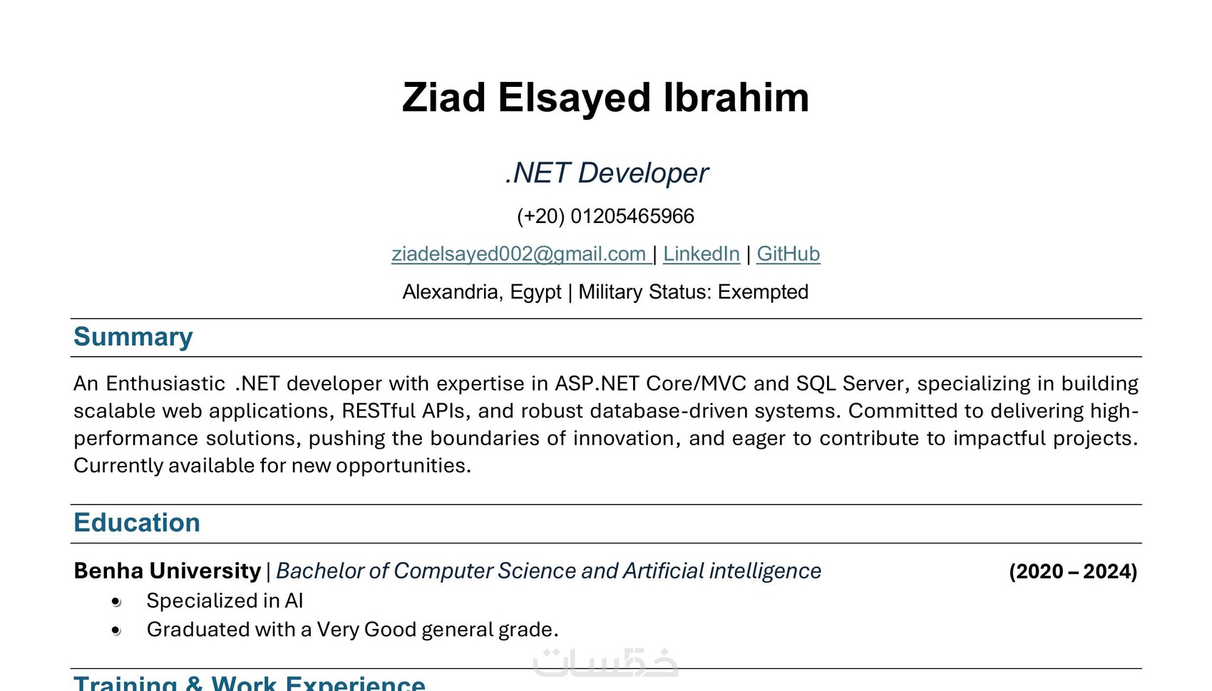 إذا كنت تبحث عن سيرة ذاتية احترافية باللغتين العربية و/أو الإنجليزية تلفت الأنظار وتضمن لك اجتياز أنظمة الفرز، فلا تتردد في طلب الخدمة الآن!