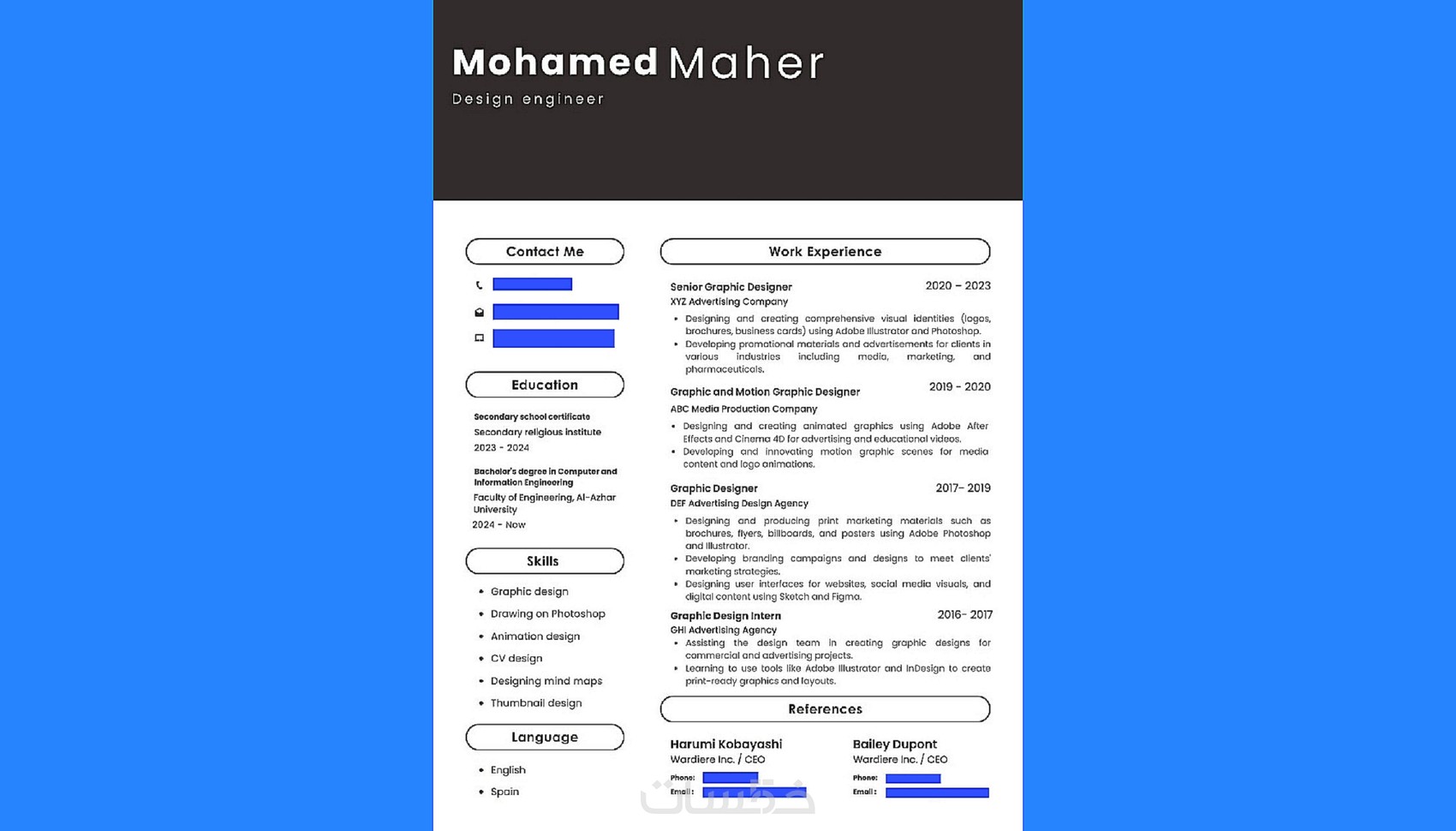 - تصميم سيرتك الذاتية انفوجرافيك او كلاسيكية حسب اختيارك