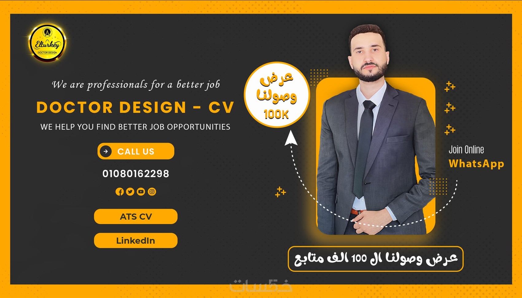- سيتم تسليم الملف بصيغة PDF وصيغة ورد قابله للتعديل في حاله طلب نظام ال ATS.