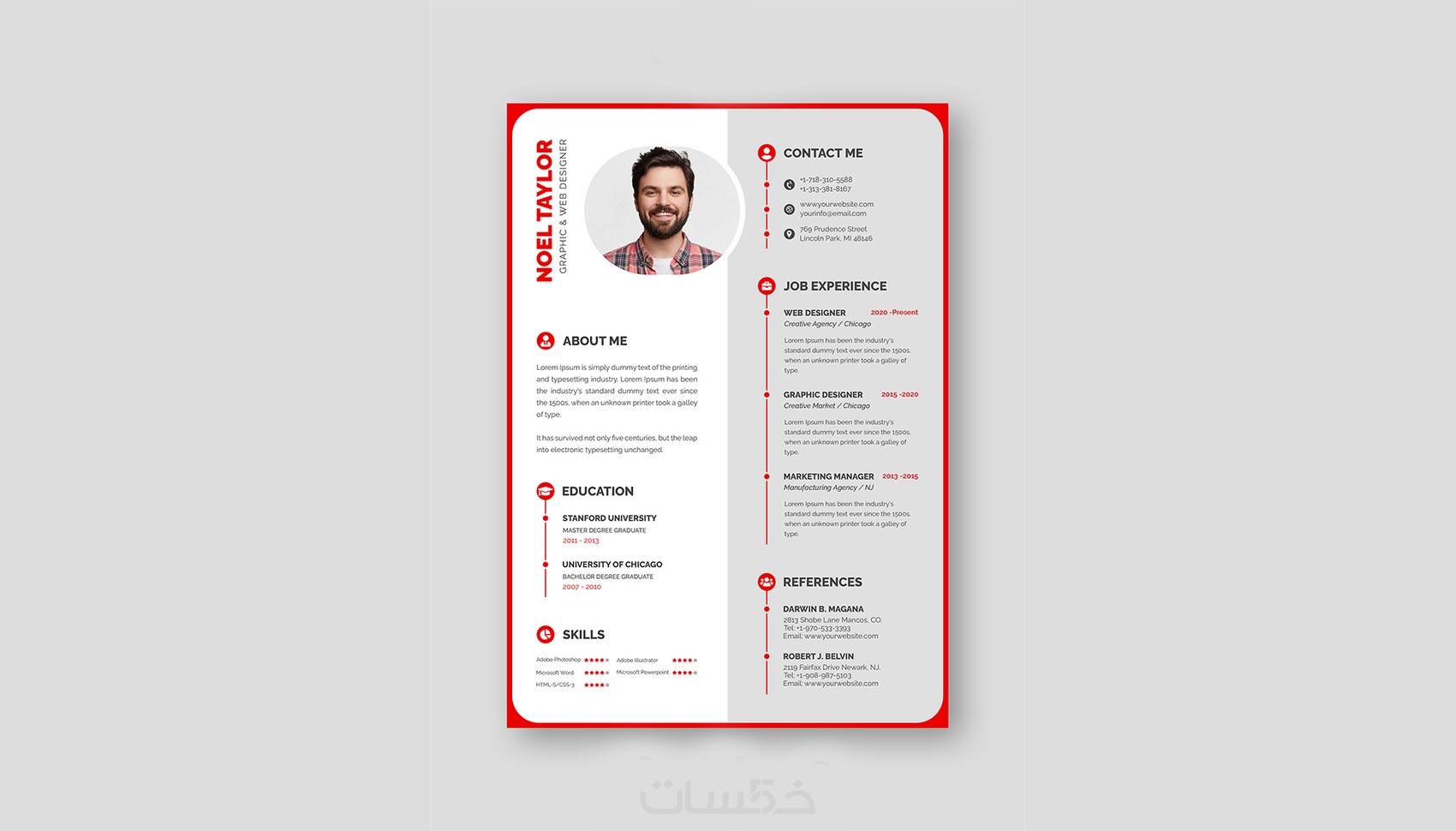 سيرة ذاتية من صفحتين بصيغة PDF، قابلة للطباعة، وباللغتين (العربية والإنجليزية) أو بلغة واحدة.