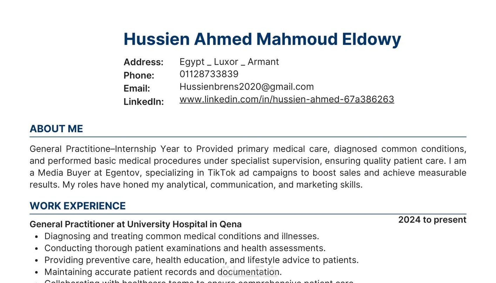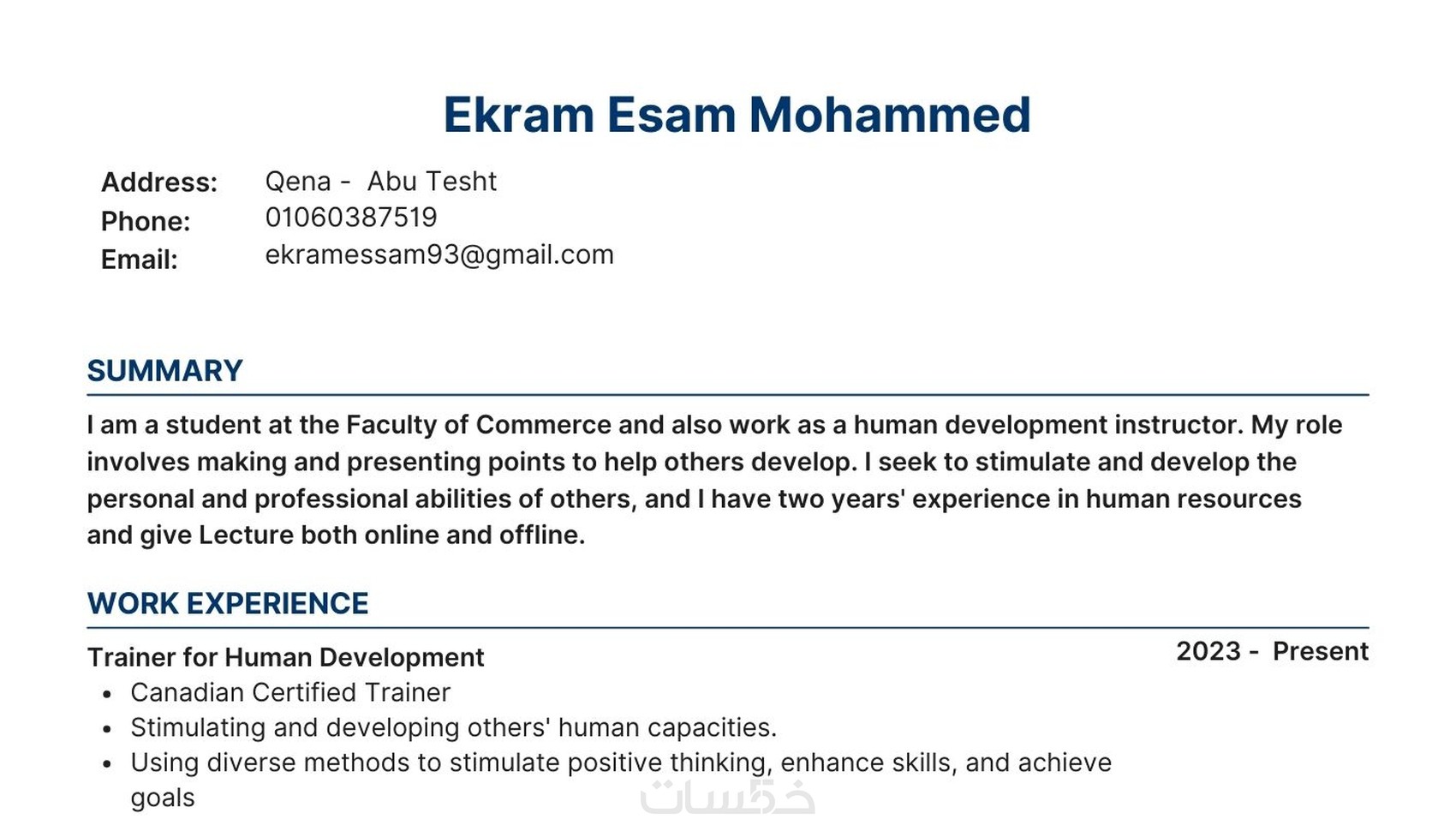 CV احترافي باللغتين العربية والإنجليزية ومتوافق مع أنظمة ATS لضمان اجتياز فلاتر التوظيف.