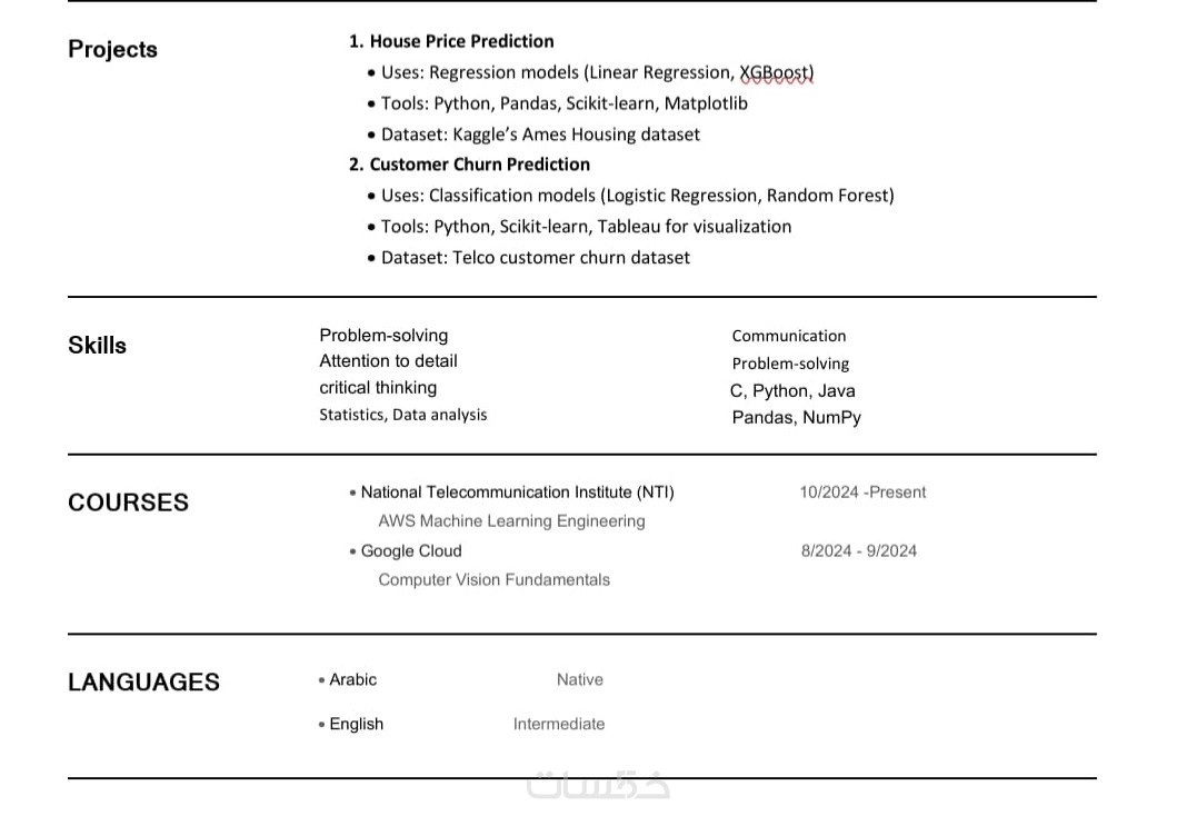 أقدم لكم خدمة كتابة السيرة الذاتية بطريقة احترافية تساعدكم على اجتياز نظام ATS (وهو نظام إلكتروني تستخدمه الشركات لفرز وترشيح السير الذاتية التي تتطابق مع متطلبات الوظيفة).