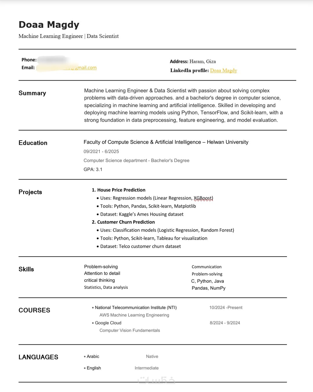- تصميم سيرتك الذاتية باللغة التي تختارها (العربية أو الإنجليزية).