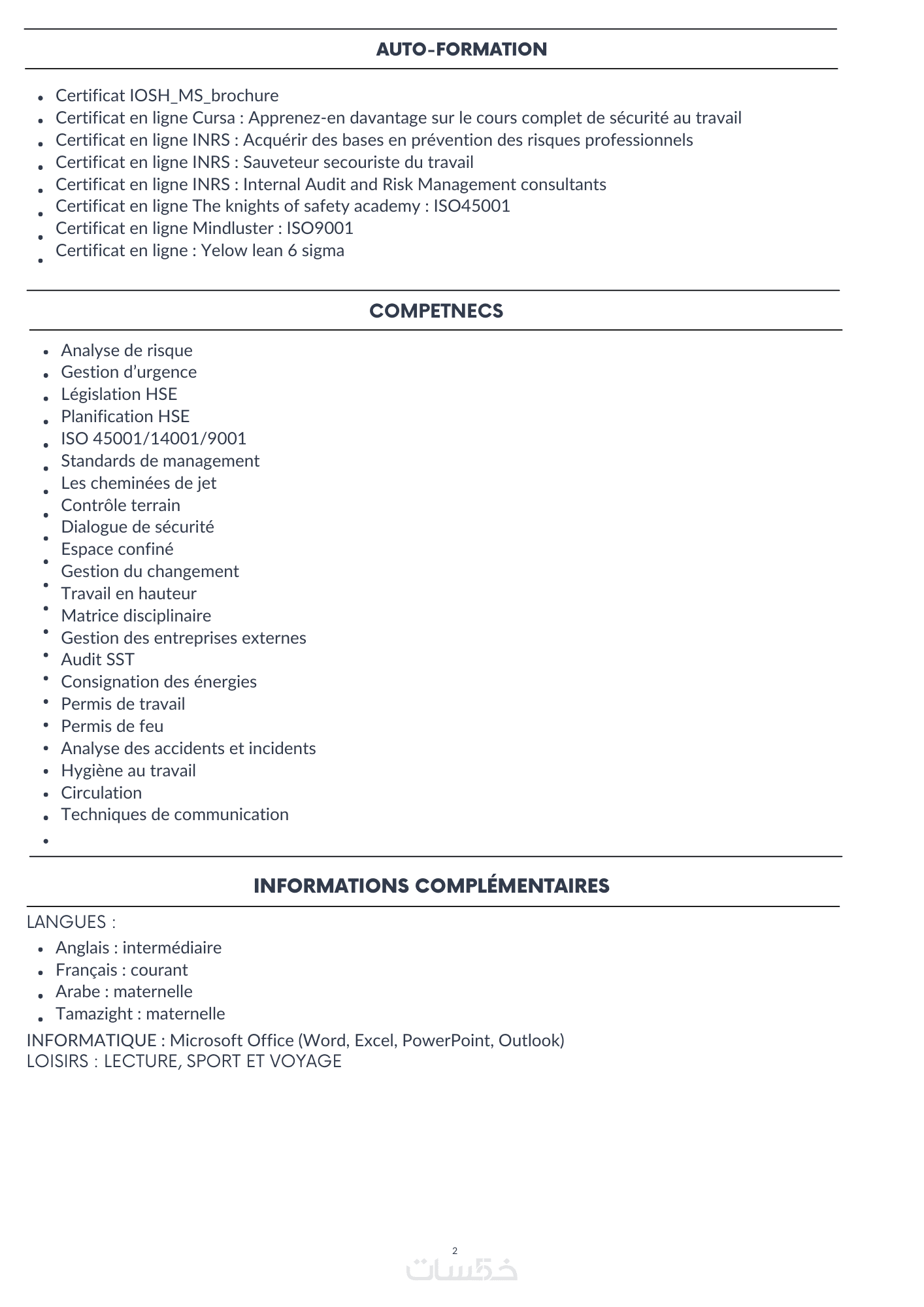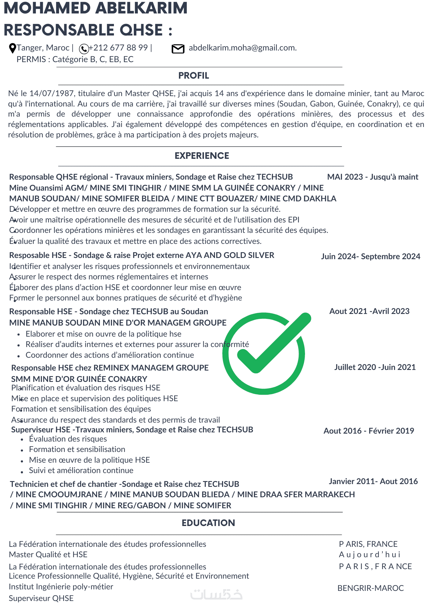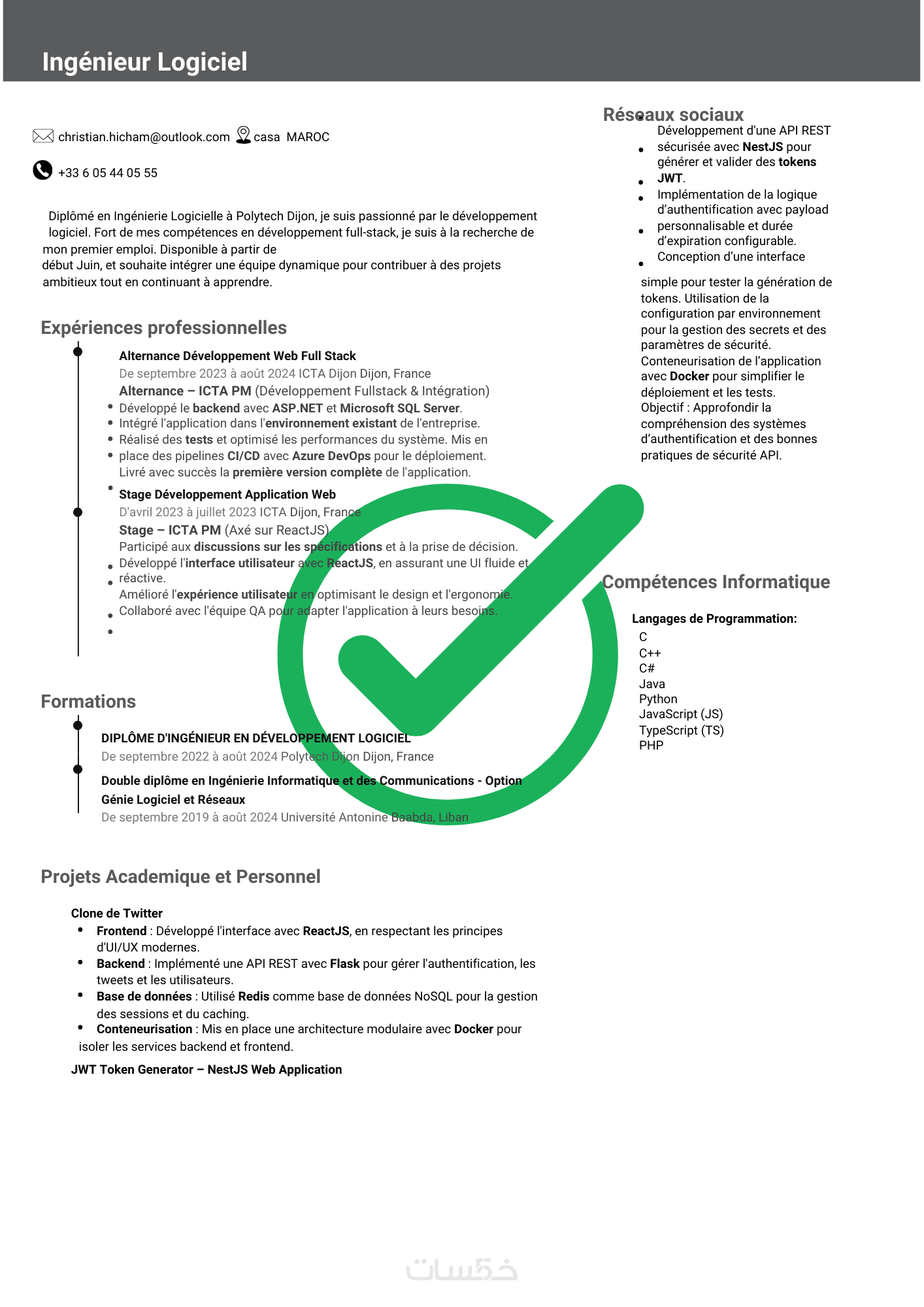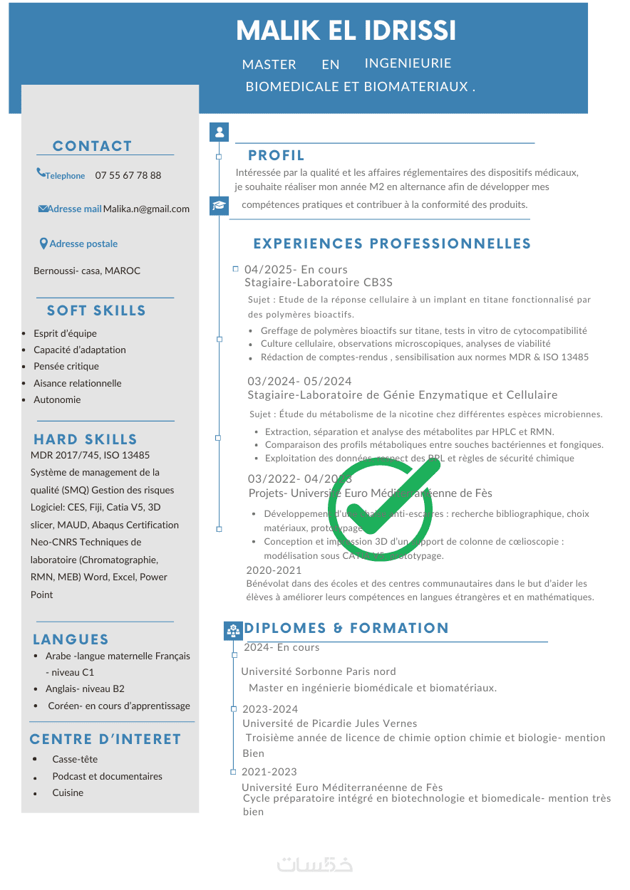 تصميم سيرة ذاتية مخصصة حسب مجالك (بالفرنسية، العربية أو الإنجليزية)
