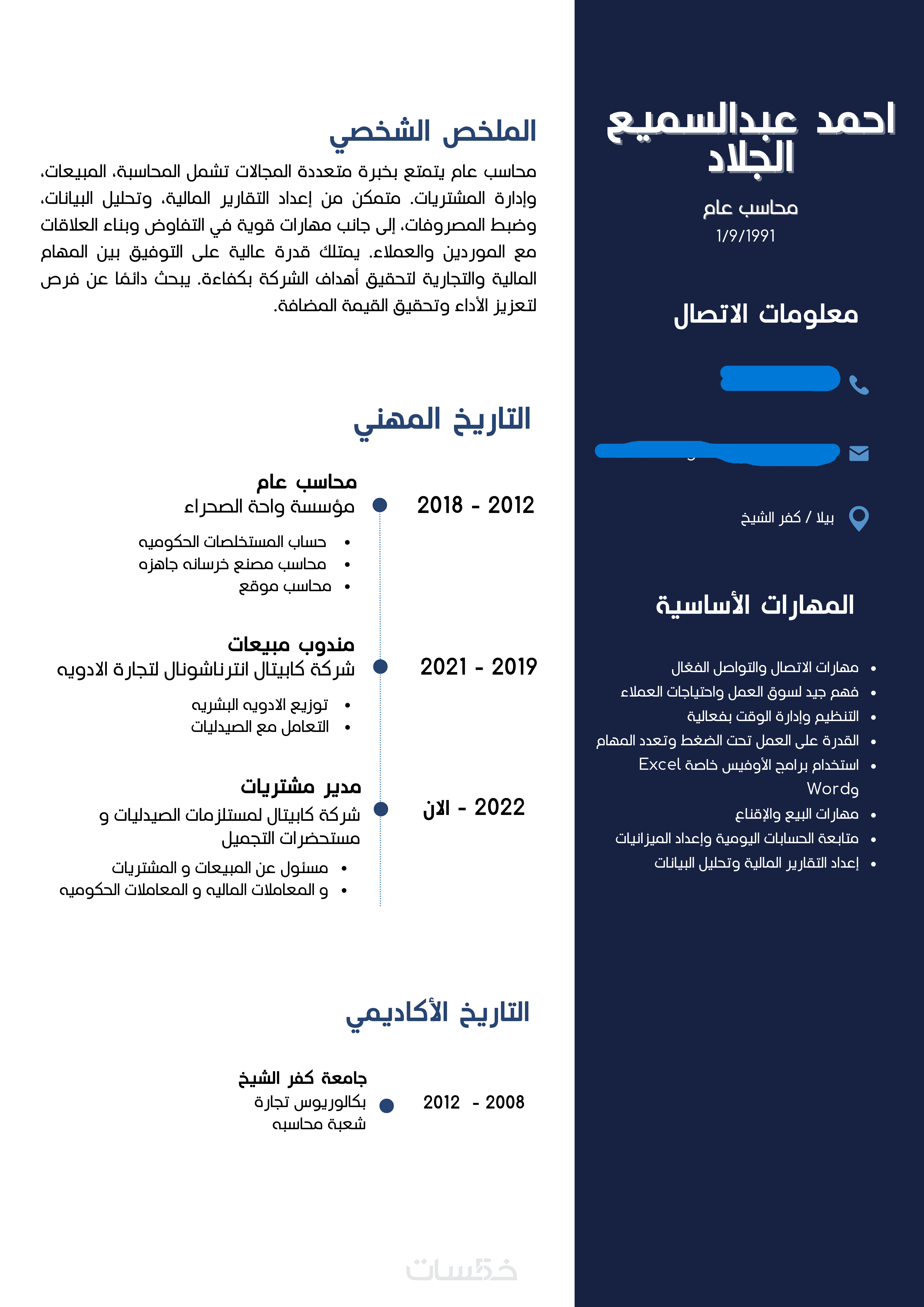 تصميم السيرة باللغتين (عربي - انجليزي)
