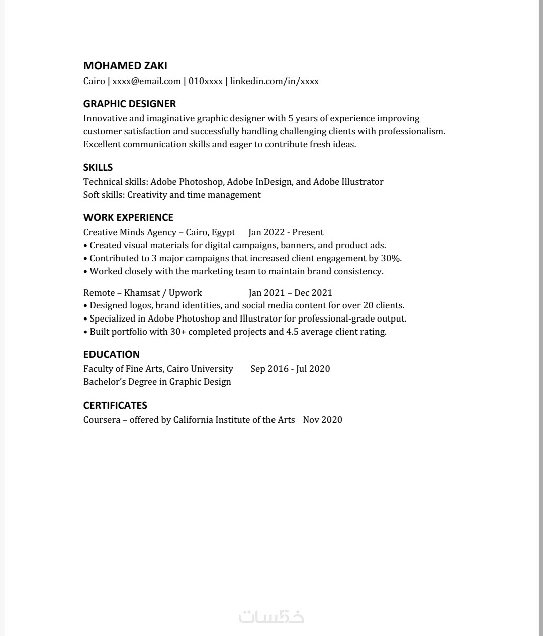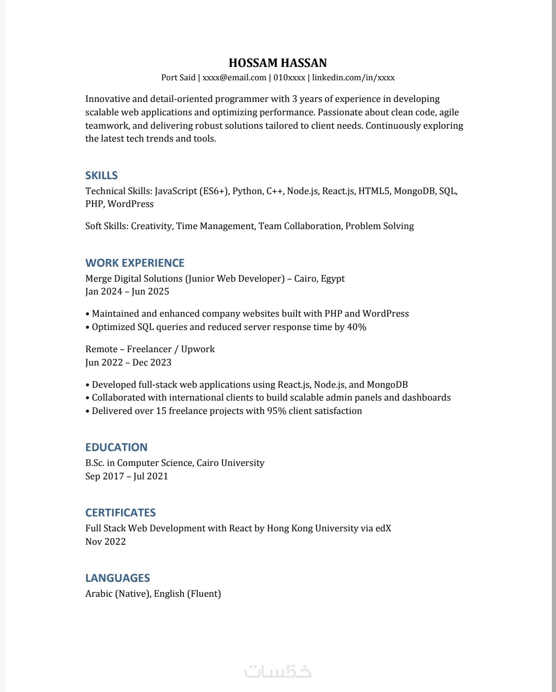 لو CV لم ينل رضاك بعد تسليم ممكن نعدل عليه تعديل واحد مجاني