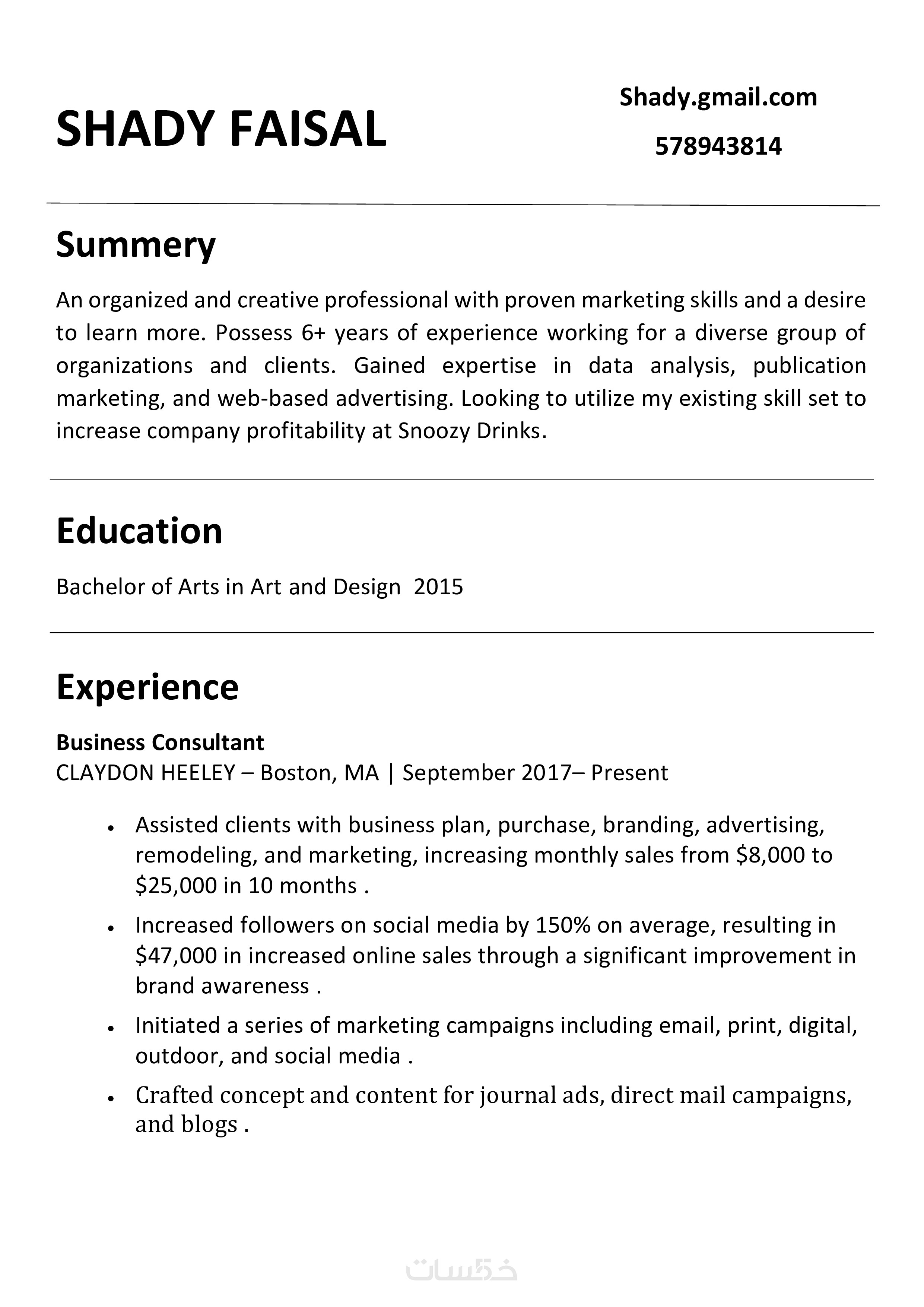 2 سيرة ذاتية مخصصة للوظيفة التى تريد التقديم لها .