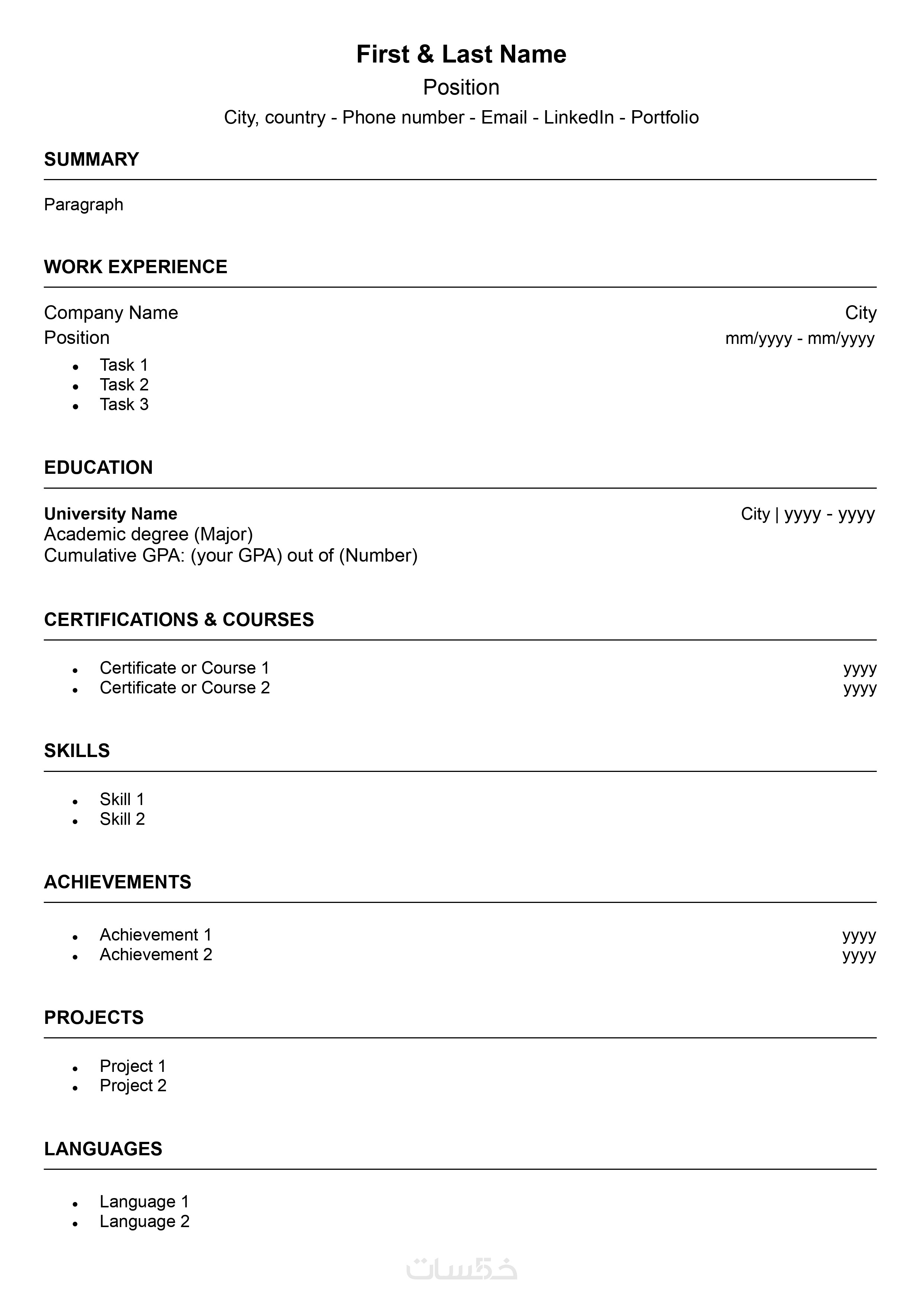 الخيار الأول: قالب سيرة ذاتية باللغة العربية – صفحة واحدة