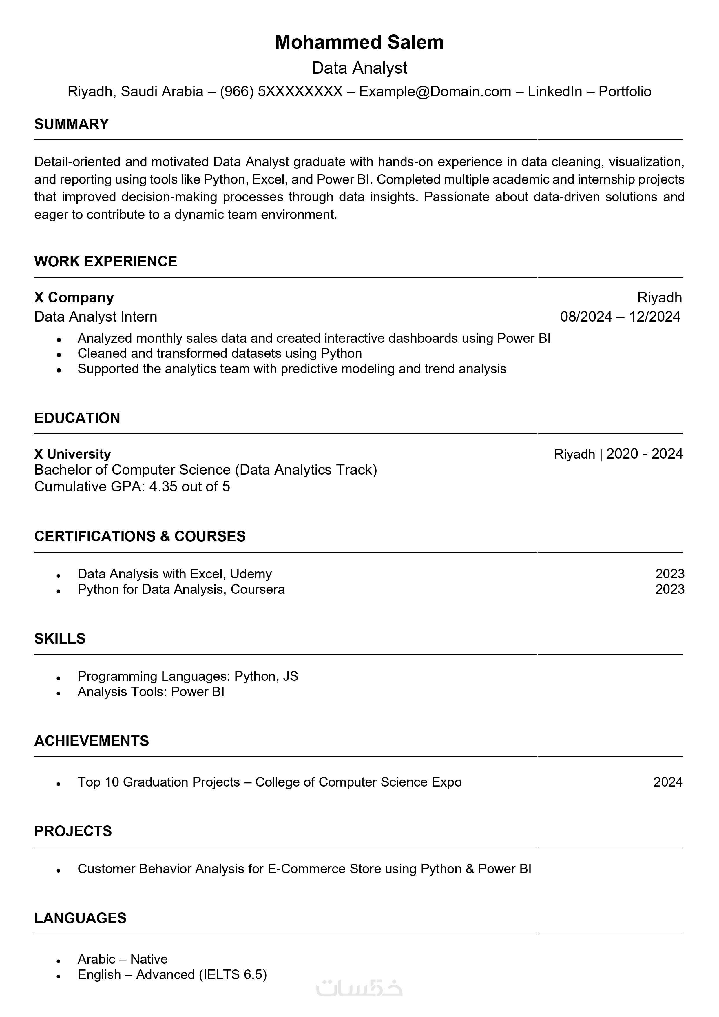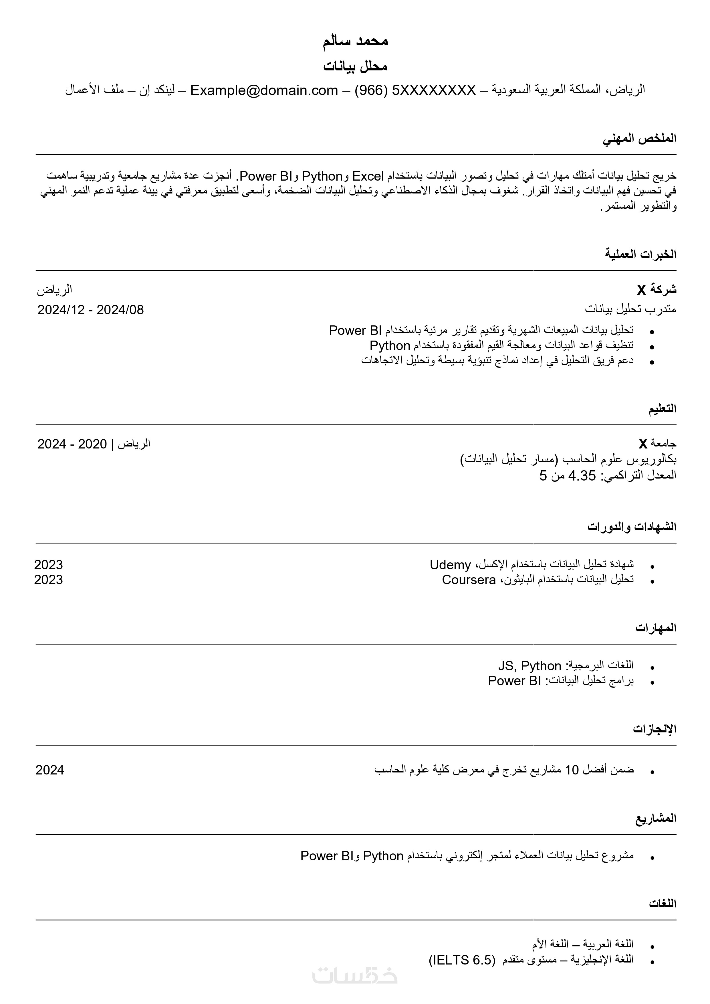 نقدم قالب سيرة ذاتية جاهز للتحميل والتعديل مباشرة من خلال برنامج Microsoft Word. منسق بشكل احترافي ومتوافق مع أنظمة ATS