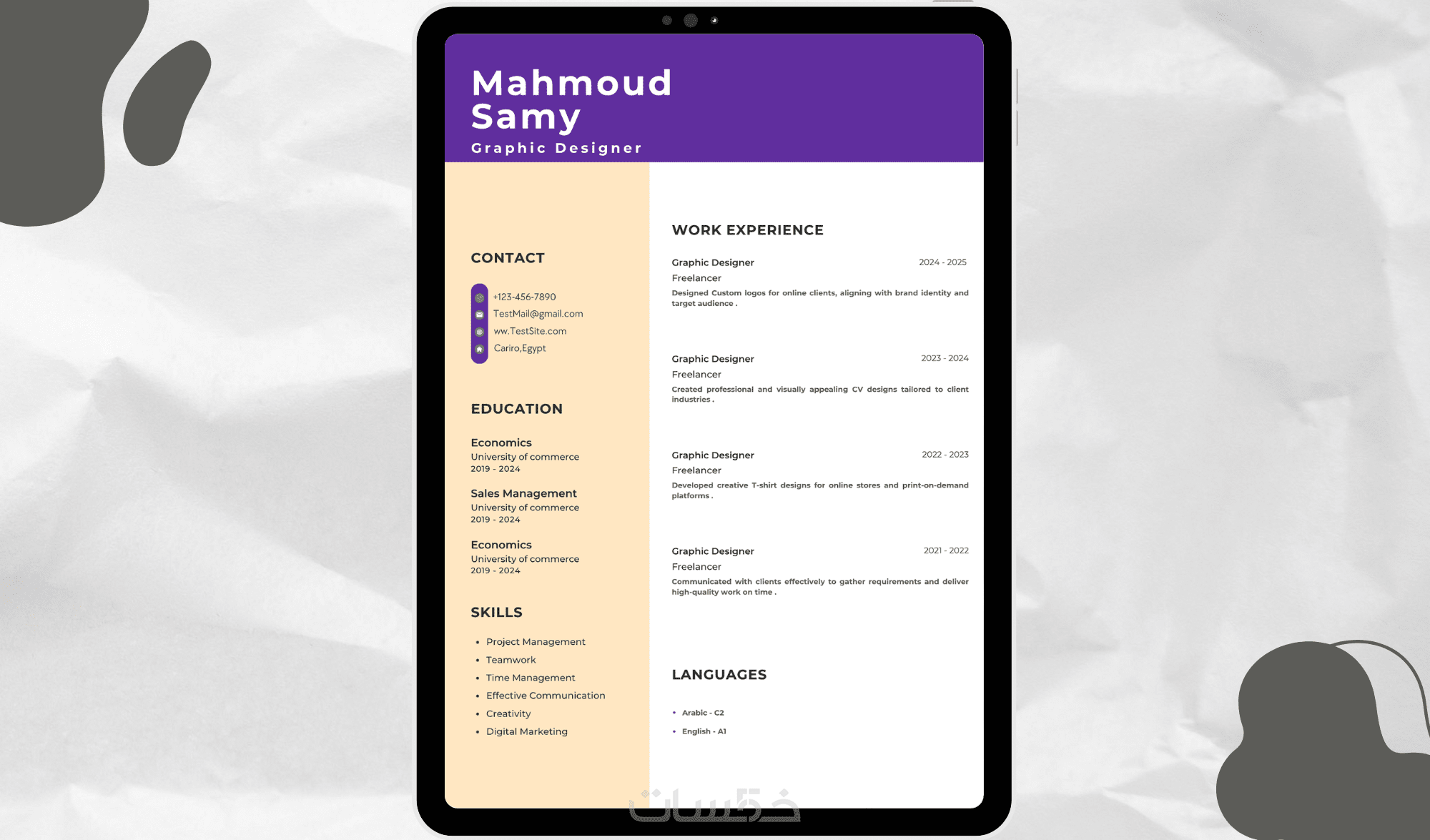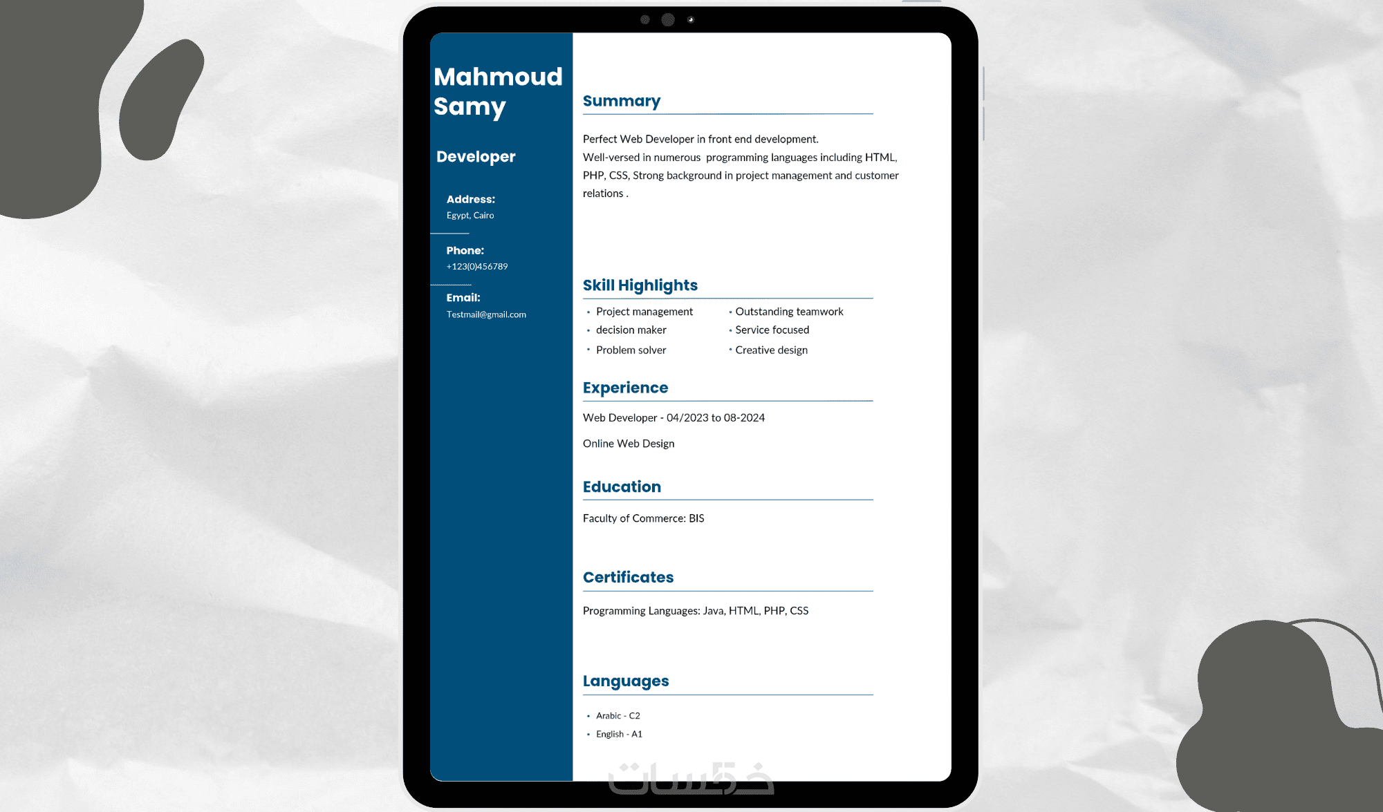 سواء كنت خريج جديد أو محترف بخبرة سأقوم بتصميم صفحة واحدة سيرة ذاتية CV باللغة العربية او الانجليزية يكون جميل و مُرَتب يليق بك. " اذا تريد صفحتين او بلغتين معا اختار من تطويرات الخدمة " .