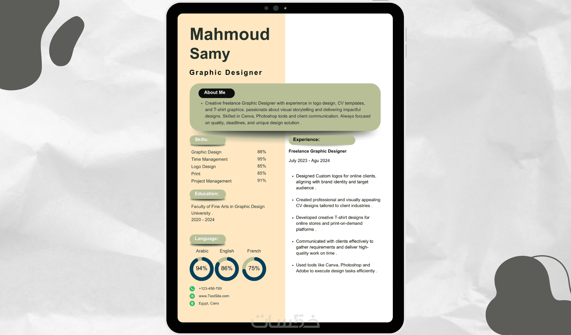 أنا هنا لمساعدتك في تصميم سيرة ذاتية احترافية تعكس مهاراتك و خبراتك بأفضل شكل ممكن !