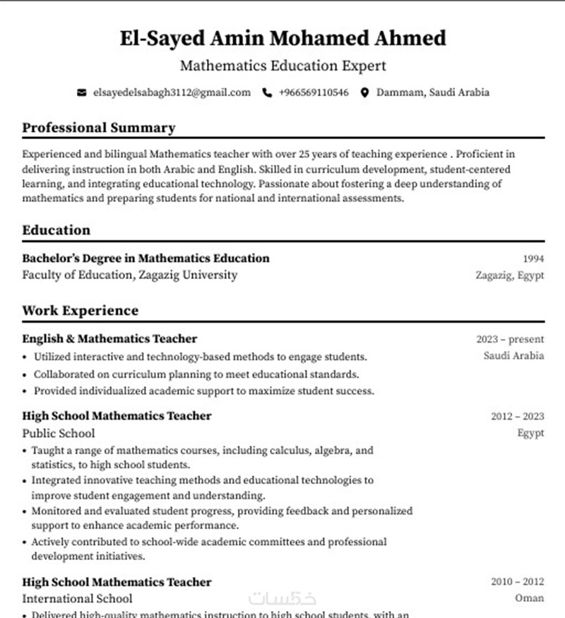 تصميم جذاب وسهل القراءة يعكس مهاراتك وخبراتك بوضوح.