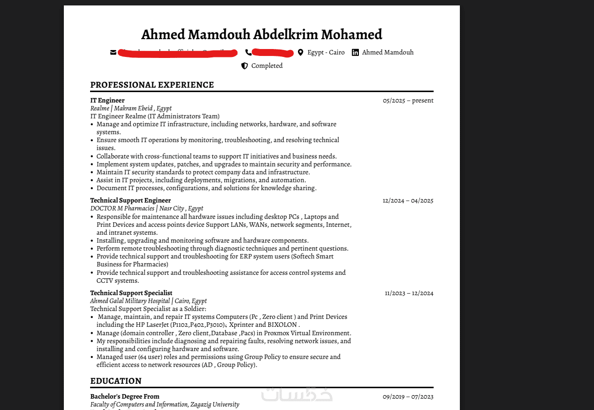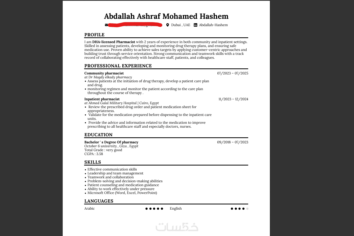إعداد سيرة ذاتية احترافية باللغة (العربية/الإنجليزية) حسب اختيارك.