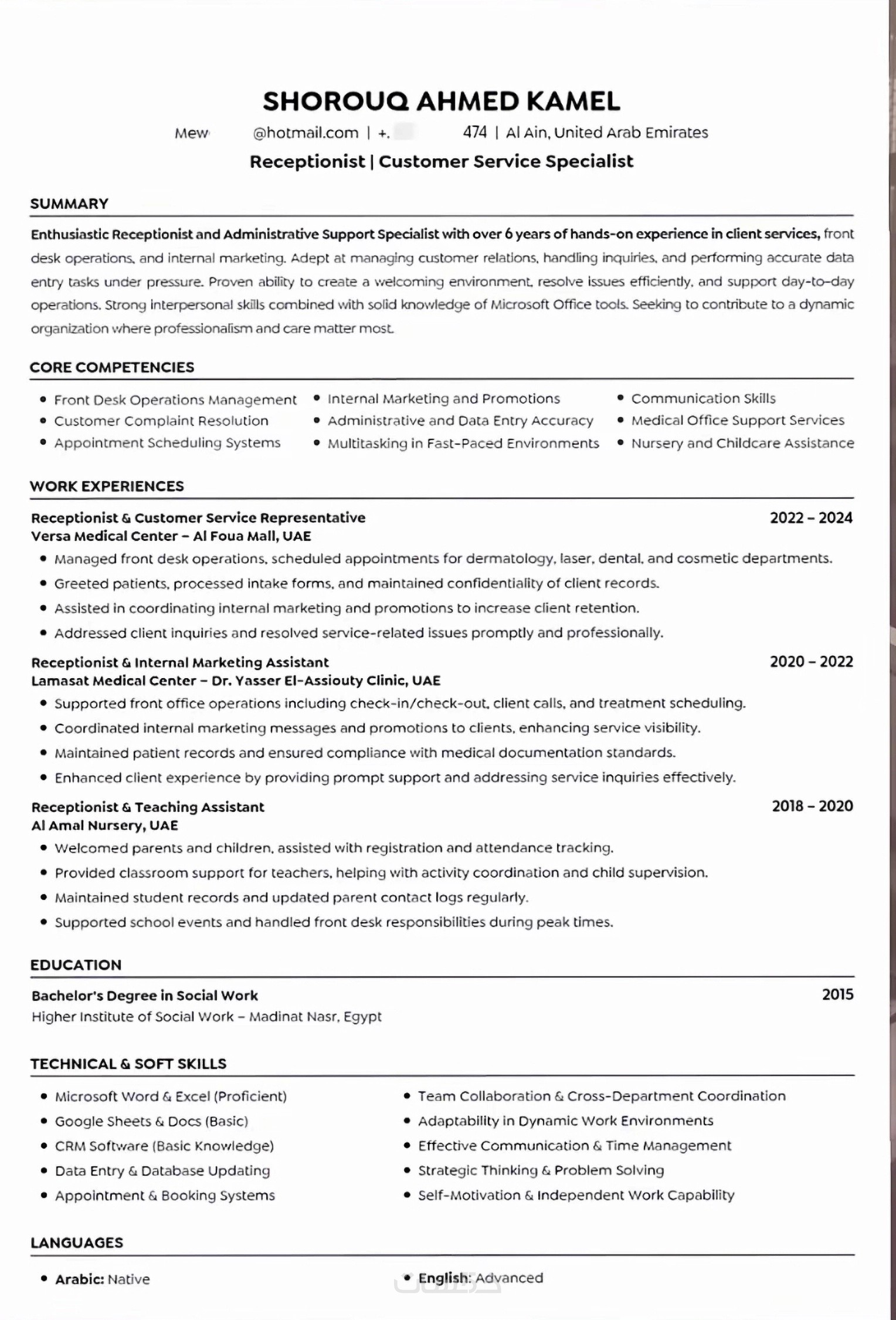 يمكنني تصميم سيرتك الذاتية باحترافية عالية ومتوافقة مع أنظمة ATS (Applicant Tracking Systems).