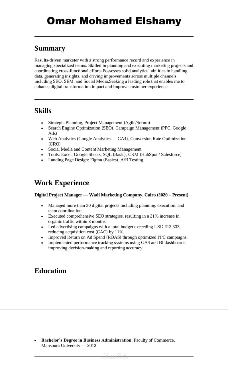-تصميم أنيق ومتوافق مع أنظمة تتبع السير الذاتية (ATS).