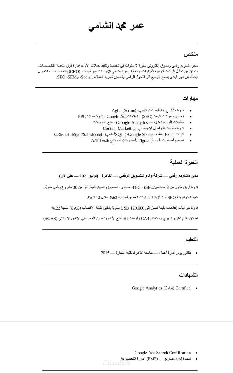 تصميم يراعي الذوق العصري ويُبرز نقاط قوتك بوضوح.